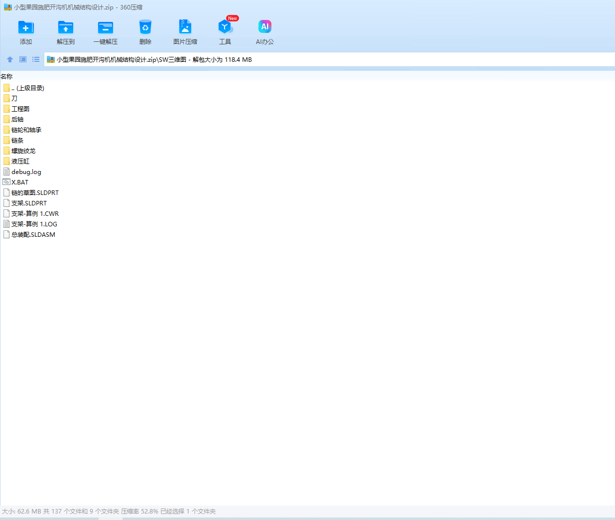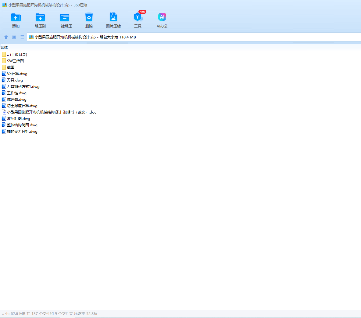 本文根据果园开沟施肥的园艺要求确定该开沟机的设计参数,对开沟机进行运动学分析,并对开沟机消耗的功率进行计算。之后完成开沟机关键部件的结构设计,绘制其主要零部件的二维图和三维图,并对各零件图进行组装,完成其装配图。