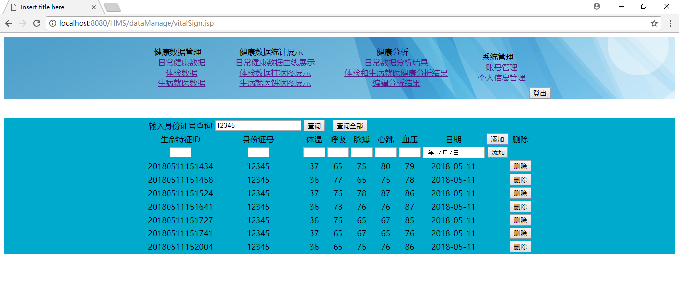 Keywords: health management; health data collection and analysis; web application system; B/S;