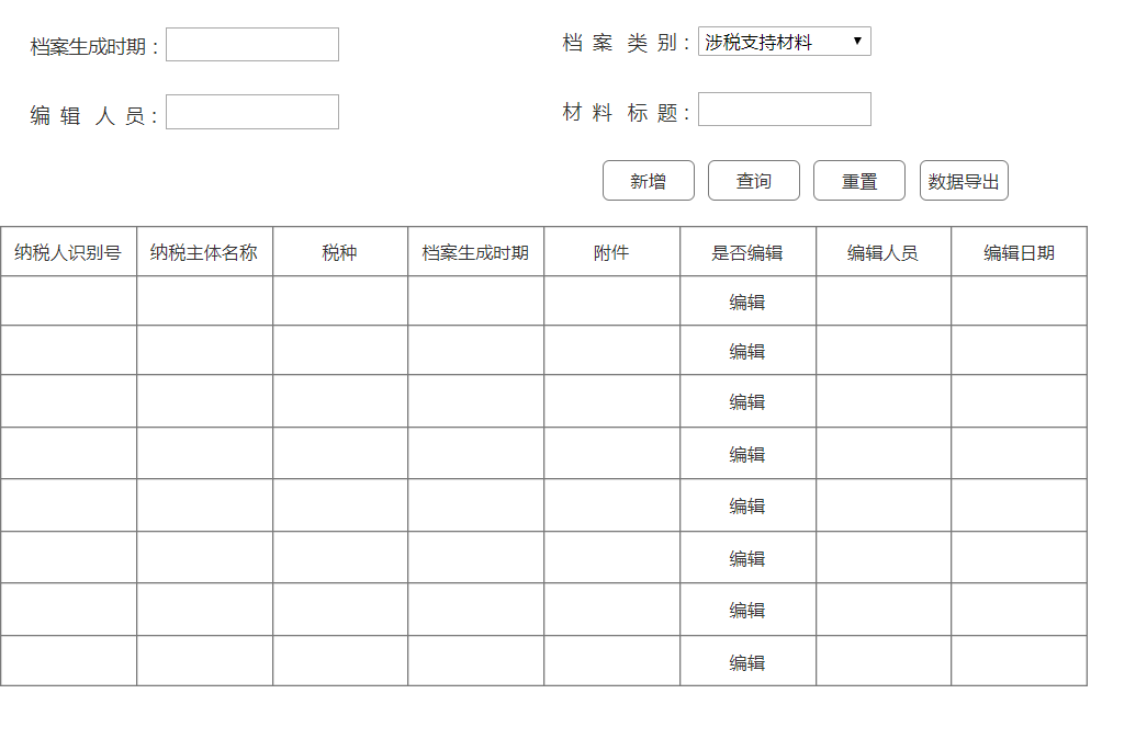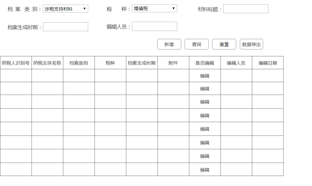 此文研究的是基于Ironrhino全栈Web开发平台平台的税务档案管理系统,该系统属于营改增VAT系统的二期子项目。 本论文首先阐述了业务的需求和系统的现状,然后描述了基于Ironrhino全栈Web开发平台的运作原理和开发原理,分析了Ironrhino全栈Web开发平台底层基于SSH框架的再封装,确定能实现的开发环境,数据存放在MySQL数据库中运行,使用Navicat图形化管理MySQL数据库还使用了win7画图工具,进行系统流程图和E-R图的绘制。之后,对税务档案管理系统系统进行总体分析与设计,首先确定税务档案管理系统的用户和用户的权限分级。用户角色为:柜员。柜员角色进行权限分级,分为总行柜员和各市县级柜员。并且分析了柜员的功能需求,然后柜员权限分级都设计了不同的可执行权限处理。同时设计了用户登录模块、新增涉税支持信息和税务报告信息、且建立了税务档案管理系统的数据库。最后,实现了税务档案管理系统的用户登录模块、总行柜员增删改查全部纳税档案信息、各级柜员查看相对应市县级别纳税档案信息的权限分级、涉税支持模块功能、税务报告模块功能。最后对税务档案管理系统的功能实现与性能测试。课题的研究对金融行业的营改增有一定的理论价值。