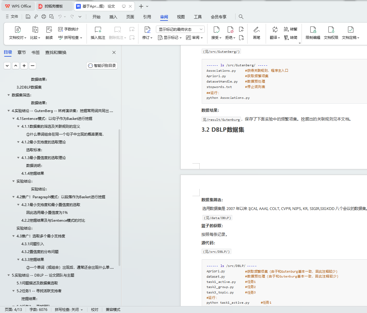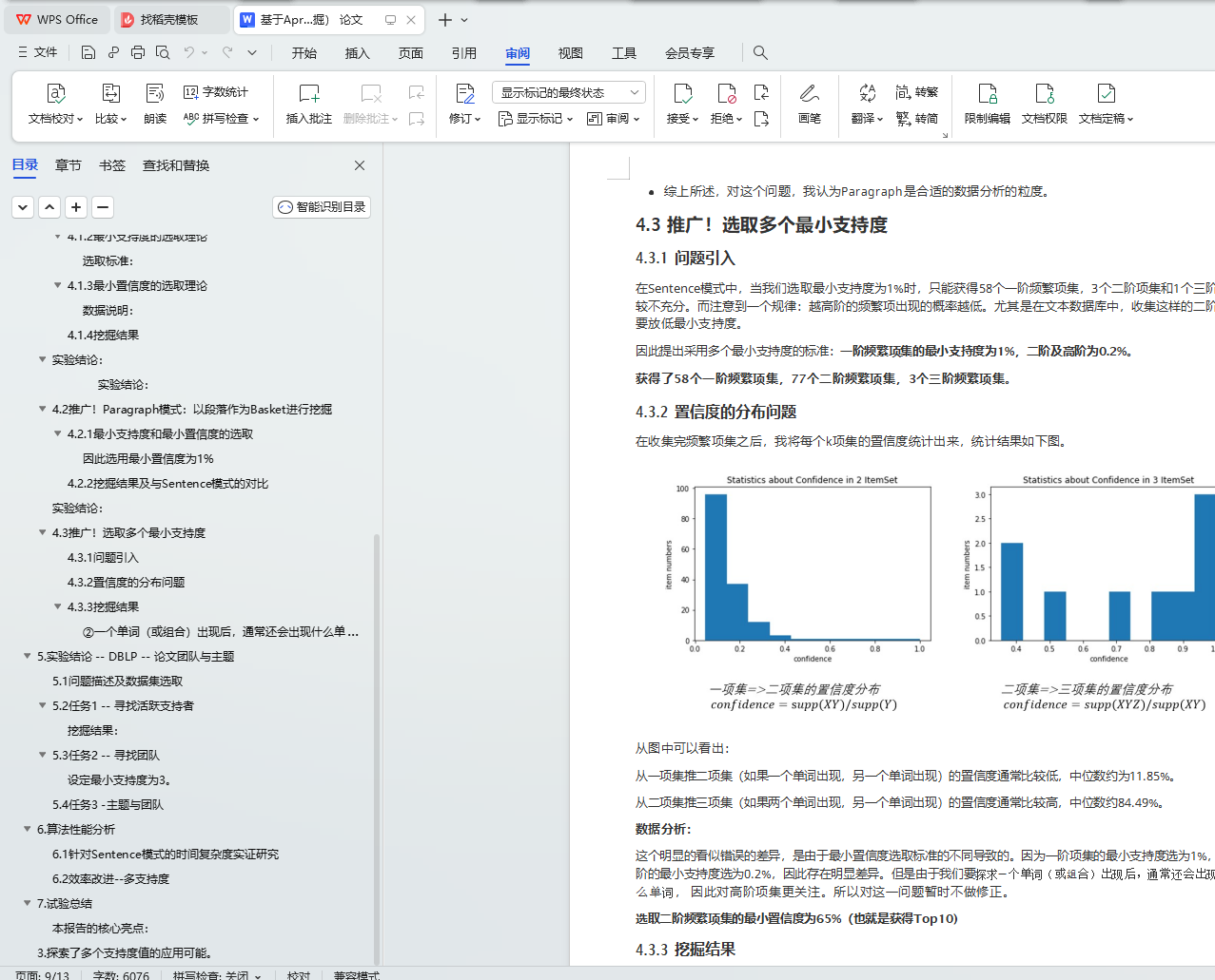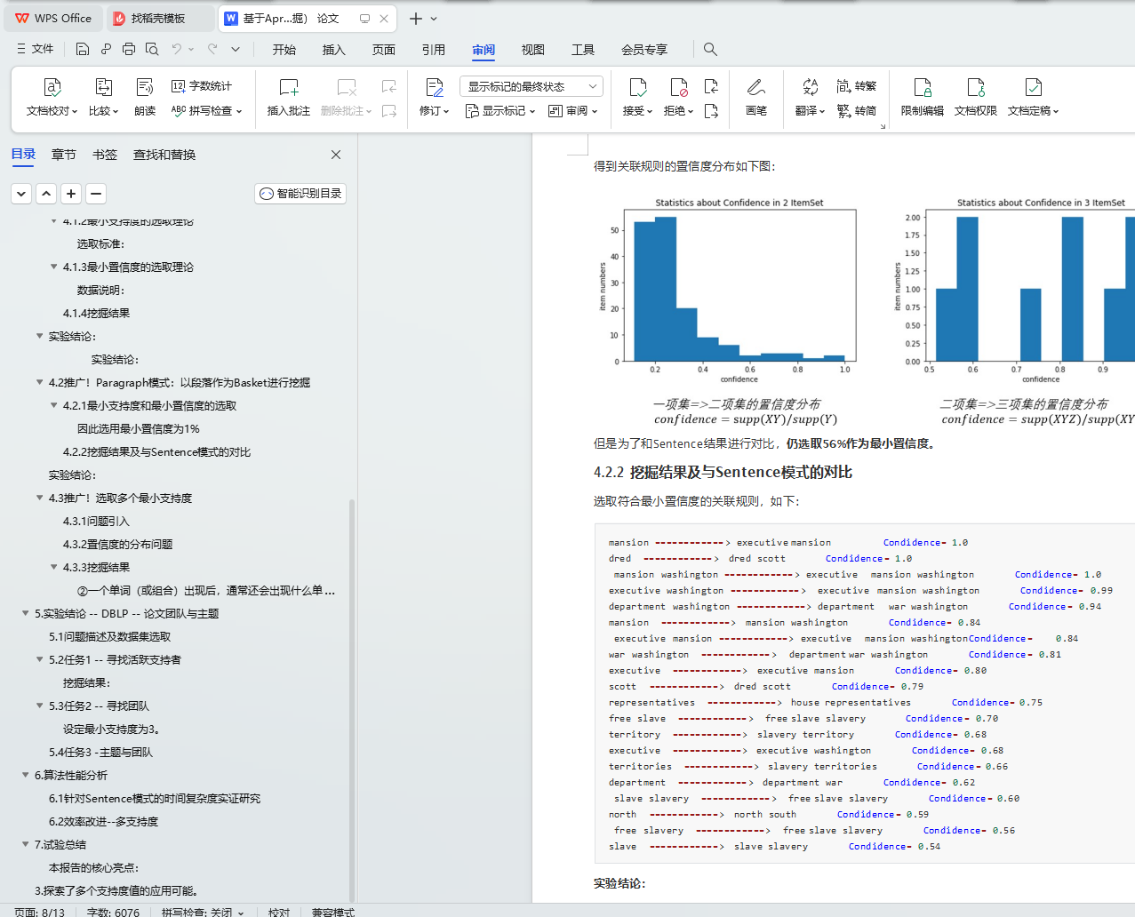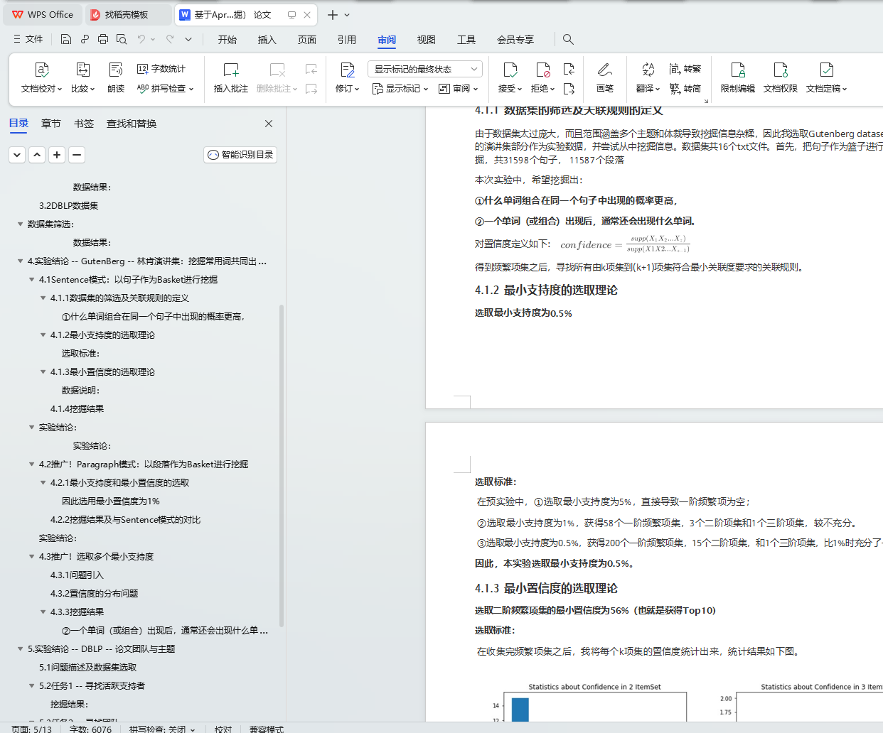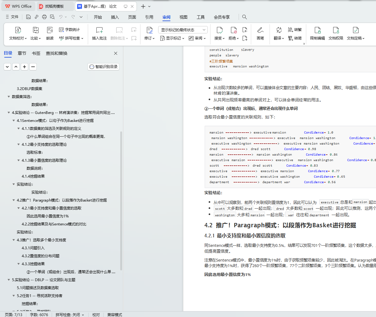 2. 进行了多粒度的数据挖掘(选取了句子和段落作为两种篮子,并比较二者区别)。
