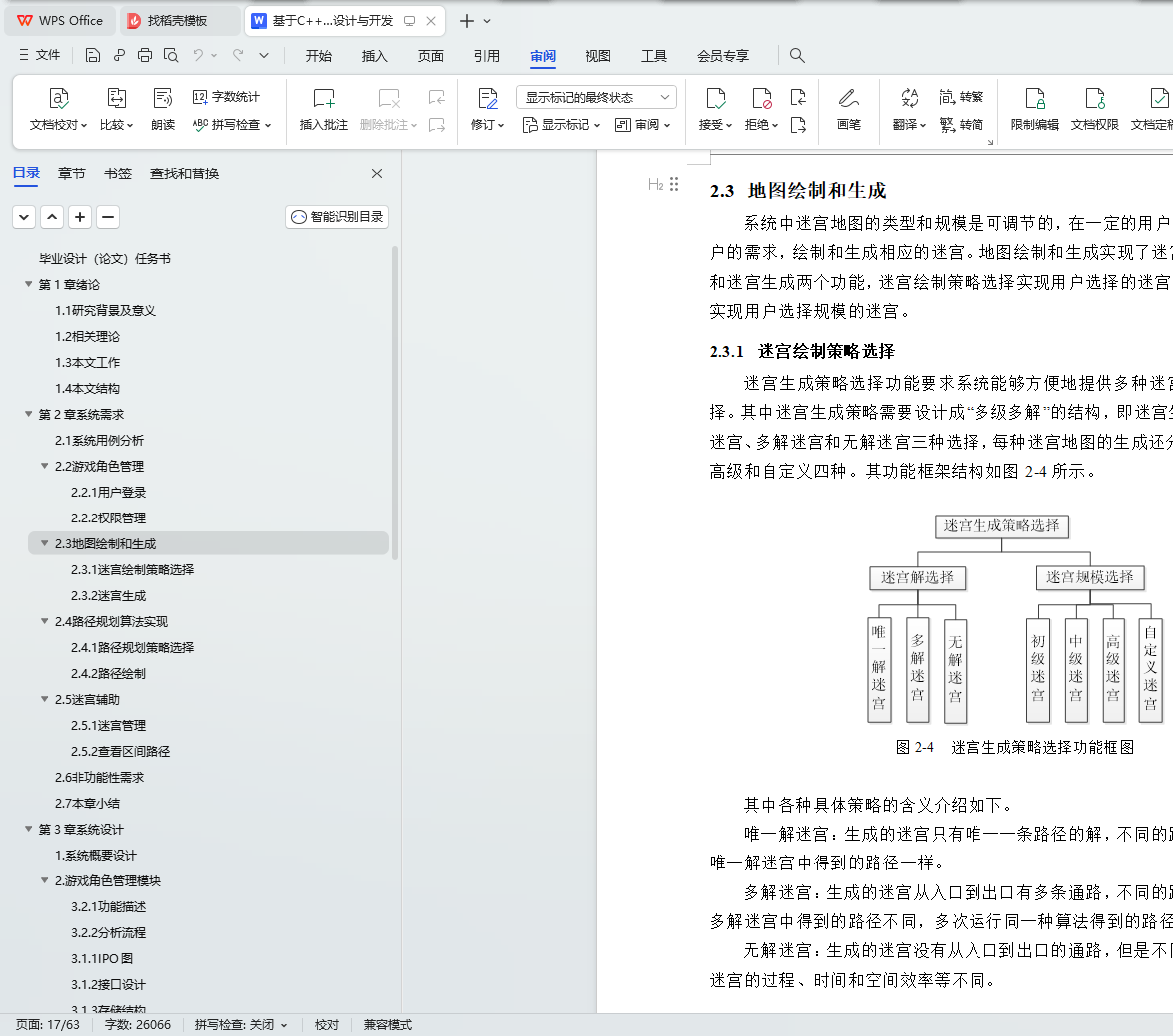 迷宫游戏是一款经典游戏,迷宫左侧有一个入口,右侧有一个出口,并有一些障碍物散布其中,需要寻找一条从入口到出口且不走出迷宫的道路。复杂迷宫游戏的设计使用迷宫生成算法绘制和生成包括唯一解、多解和无解多种情况的精细复杂迷宫地图,且使用路径规划算法在人工智能寻路中具有较高的时间效率和空间效率。本文设计并实现了复杂迷宫环境下地图生成的游戏路径规划问题,完成了系统的主要功能:游戏角色管理、地图绘制和生成,路径规划算法实现。
