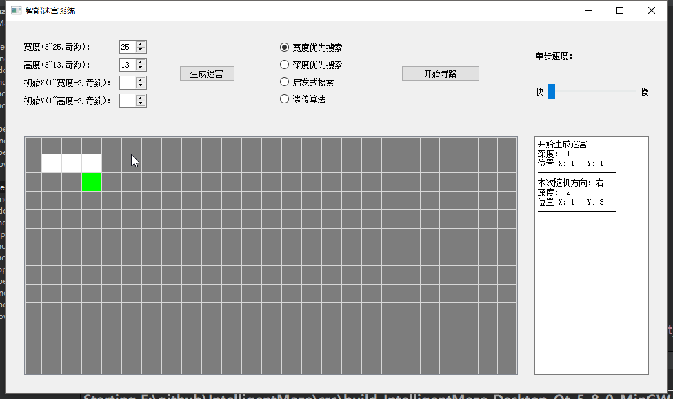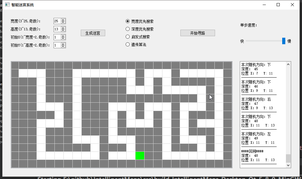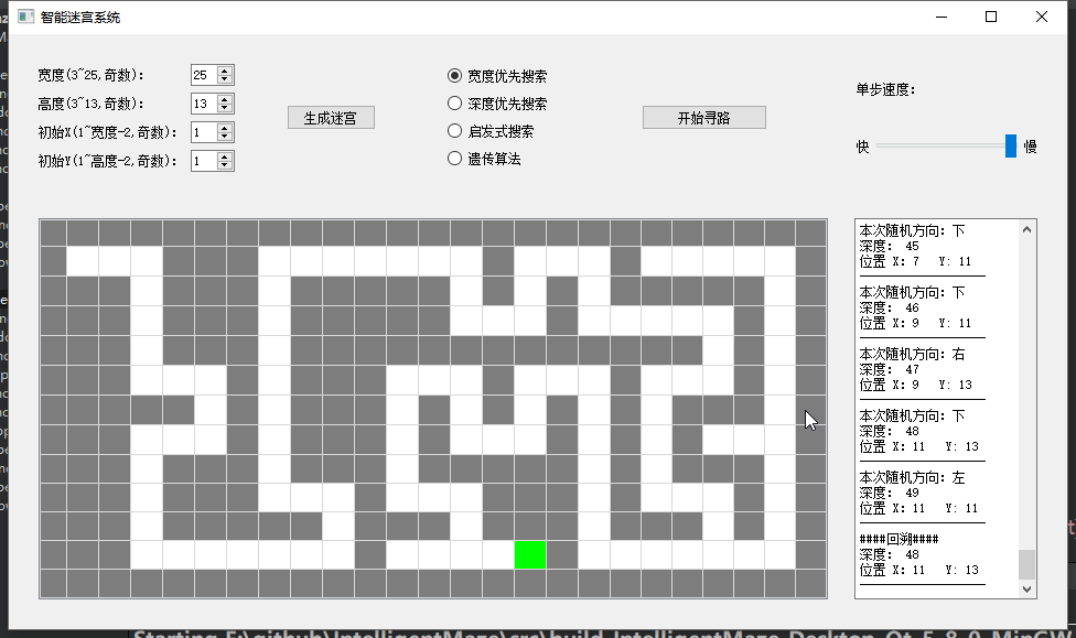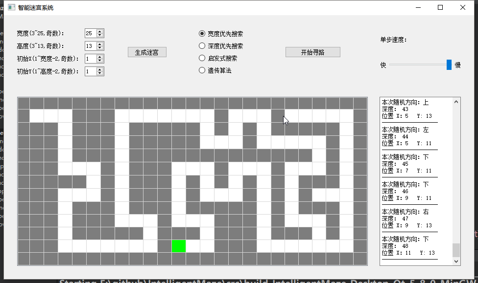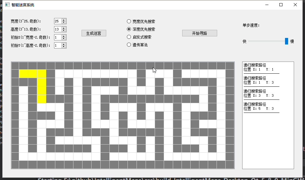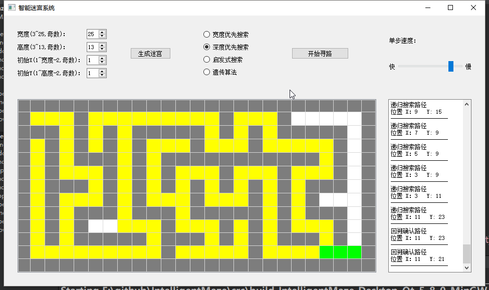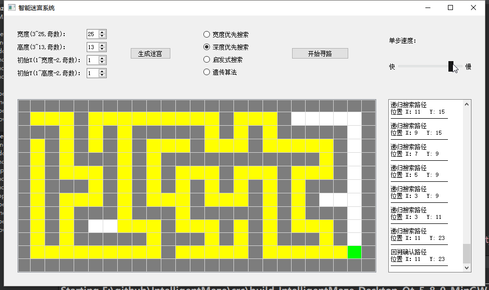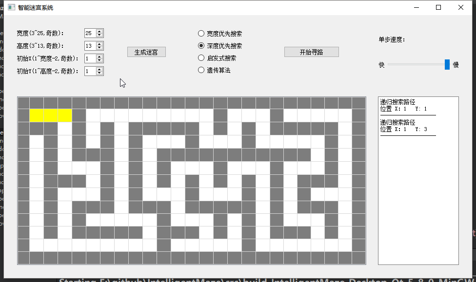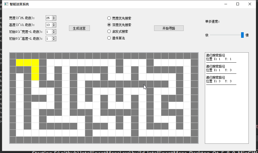 经典的迷宫游戏是在一个由障碍物和通路组成的复杂环境中,玩家通过上下左右操作使得游戏角色从左上角的入口点走到右下角的出口点的过程。智能迷宫游戏系统是一个可以自动生成用户自定义大小和起始位置等信息的随机复杂有解迷宫,然后选择不同的路径规划算法寻找一条从起始点到目标点的最优路径,并且可以将迷宫生成过程和寻路过程动态地展示出来的系统。它的主要功能包括:游戏角色管理、复杂有解迷宫生成、自动寻路、输出算法执行信息和设置系统单步运行速度等。