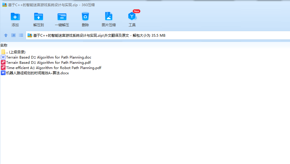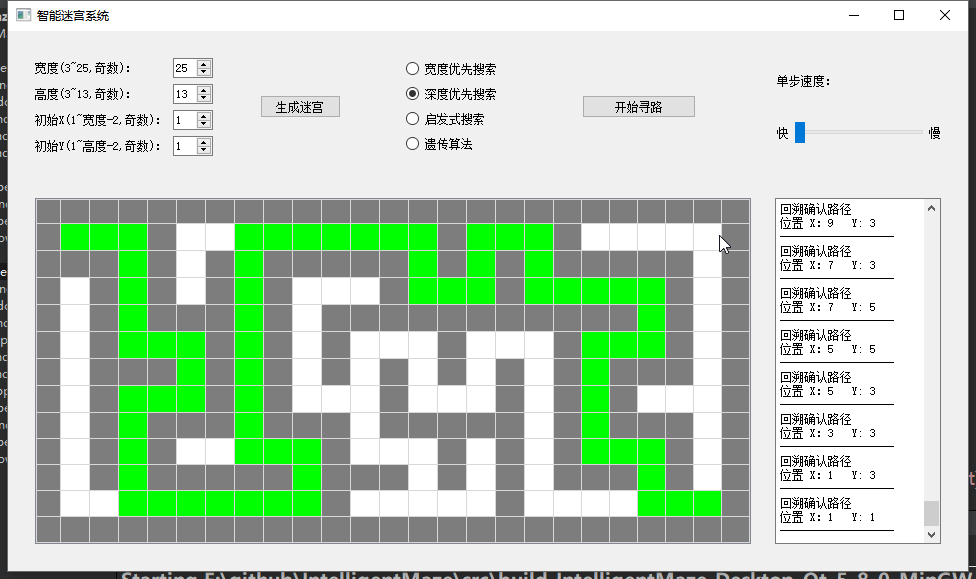 本文的研究工作主要包括:输入迷宫的宽度、高度和起始点位置,然后生成随机、复杂、有解的迷宫;从深度优先搜索、宽度优先搜索、启发式搜索和遗传算法等四种路径算法选择一种算法来寻找从起始点到目标点的最优路径并对四种算法的运行结果进行分析和比较;动态可控地展示迷宫生成和路径规划过程;结合实际软件开发情况,总结不同路径规划算法的优势和适用范围。