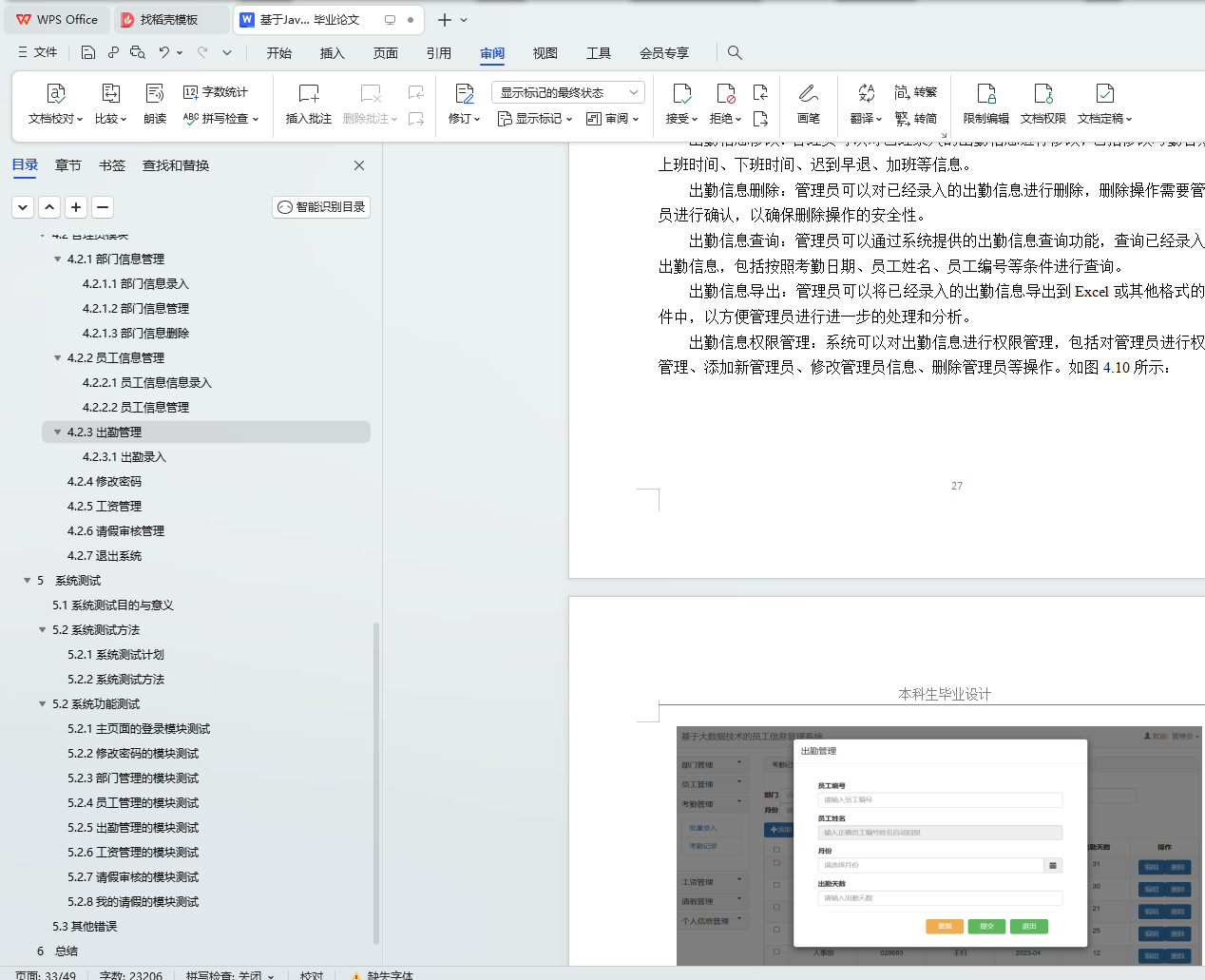 5.2.5出勤管理的模块测试