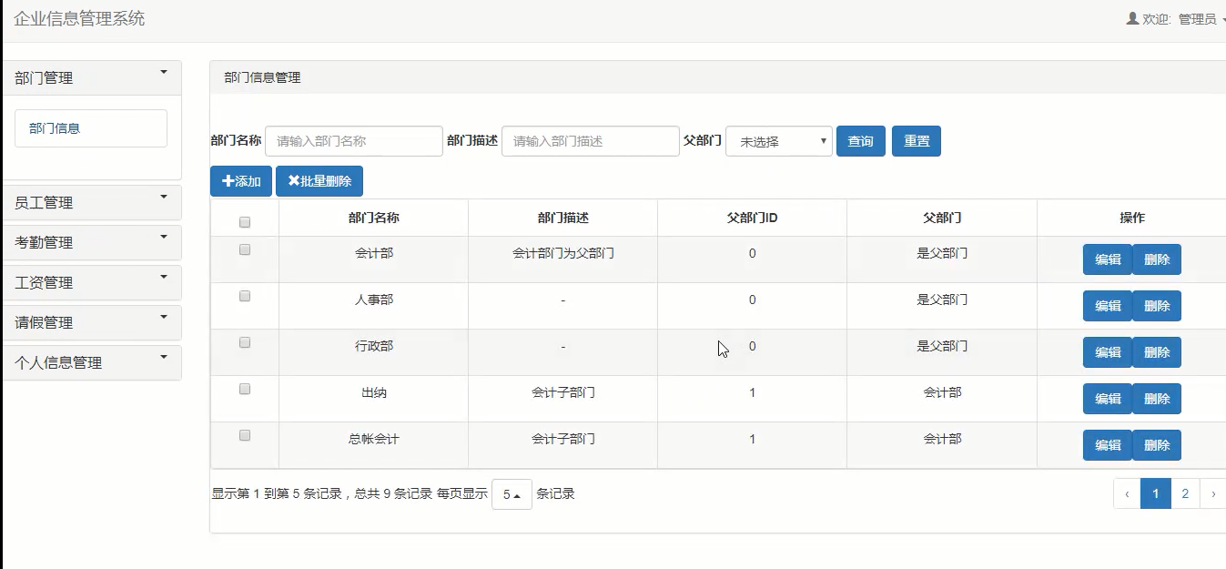 4.2.1部门信息管理