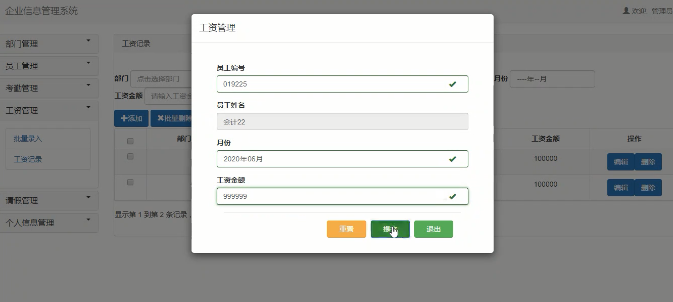 5.2.6工资管理的模块测试