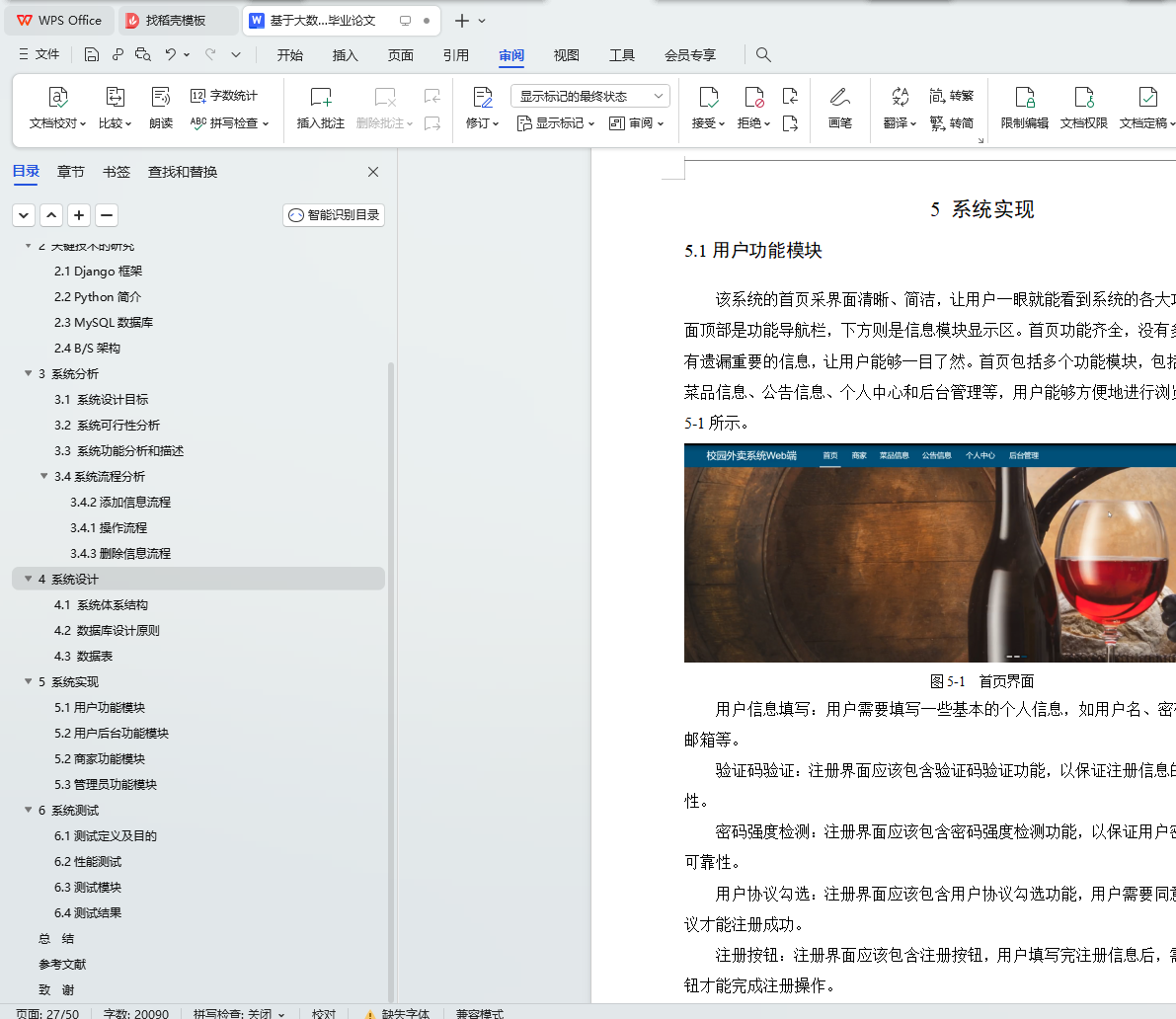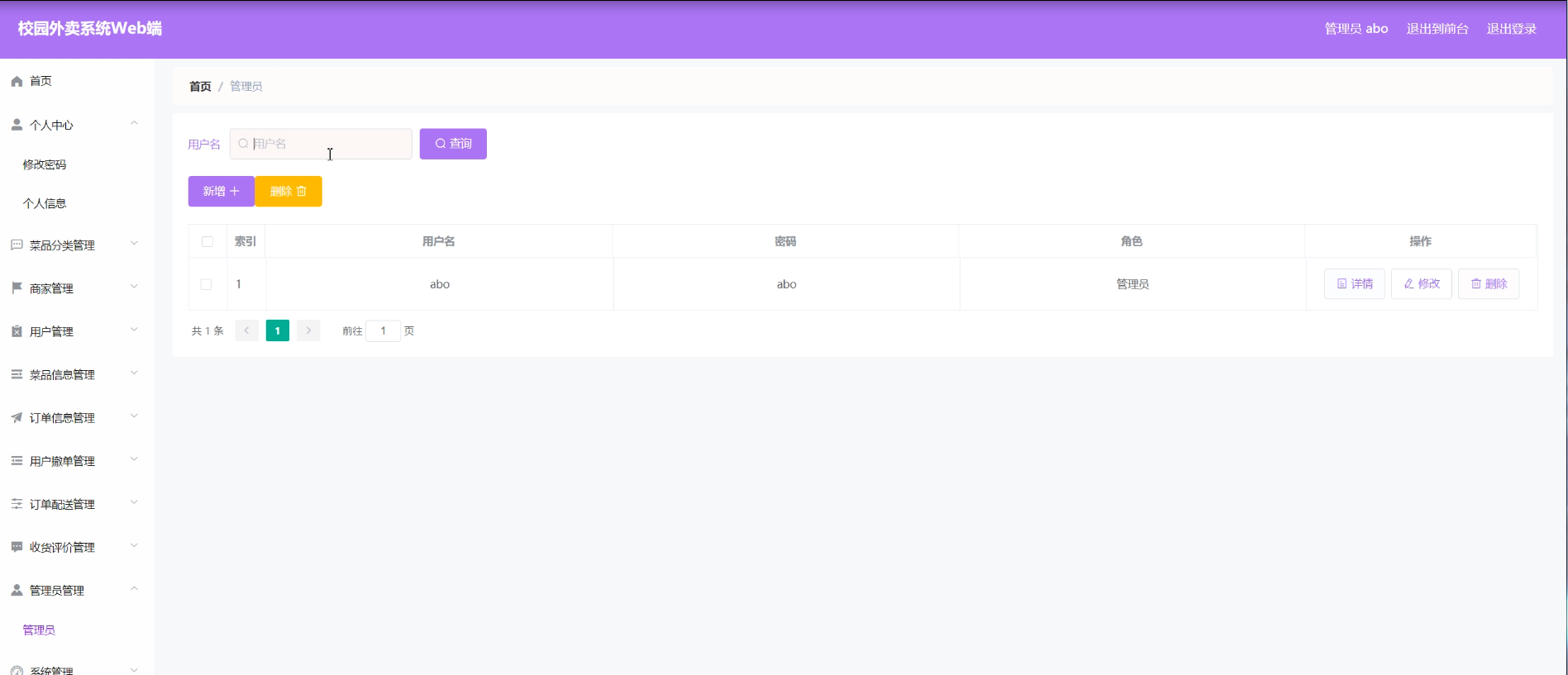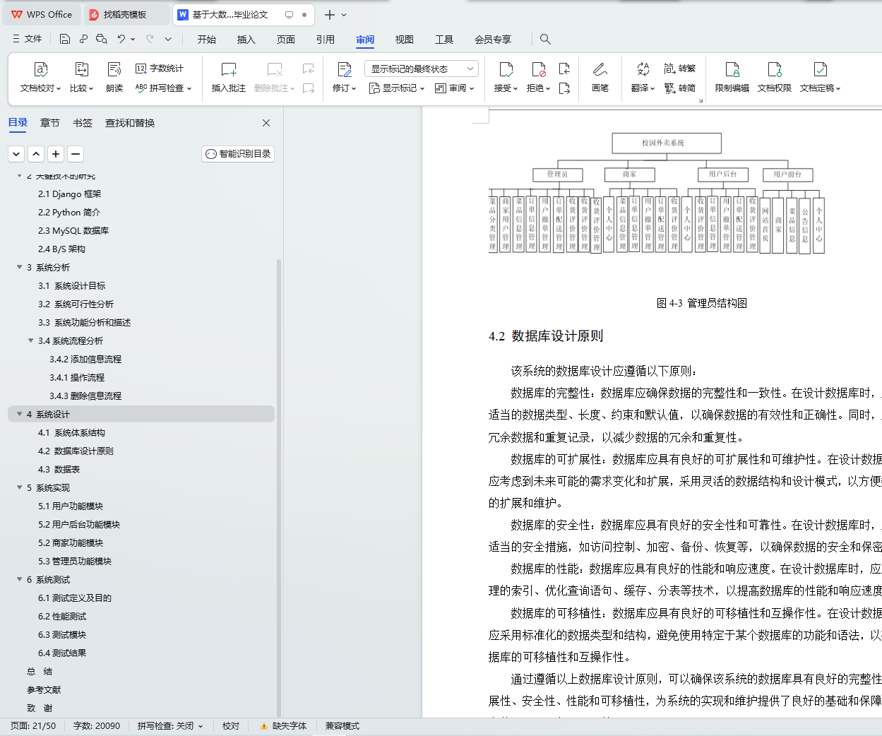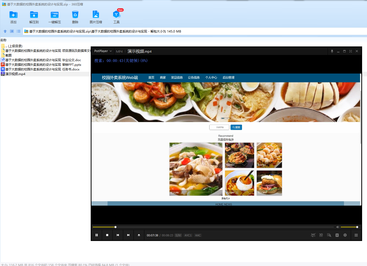 本文的主要贡献包括:提出了一种基于大数据技术的校园外卖系统的设计思路和实现方法,为校园内外卖业务的管理和发展提供了新的思路和方法。使用Python语言进行开发,采用mysql数据库进行数据存储,使用pycharm软件进行开发,使系统具有高效、稳定和易于维护的特点。引入了大数据技术,如数据挖掘和分析等,对订单数据进行深入挖掘和分析,提高了系统的预测和推荐能力,为用户提供更优质的服务。实现了一个完整的校园外卖系统,包括用户端、商家端、配送员端等多个模块,为各类用户提供了一个方便、快捷、高效的外卖服务平台。
