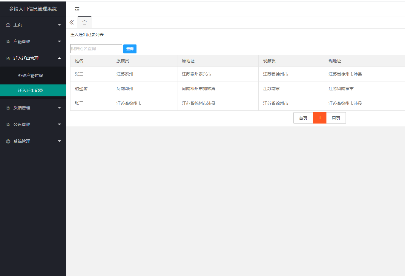 关键词:人口信息;户籍信息;Java;MySQL;B/S