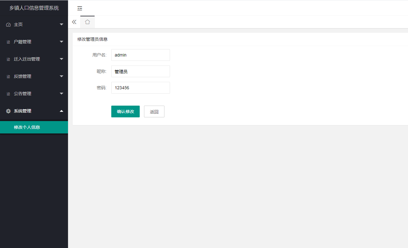 Based on Java, MySQL and B/S development technology, we designed and implemented a township population information management system based on big data. The system is designed to provide a convenient way to manage and maintain township population information to better support government and business decision-making.