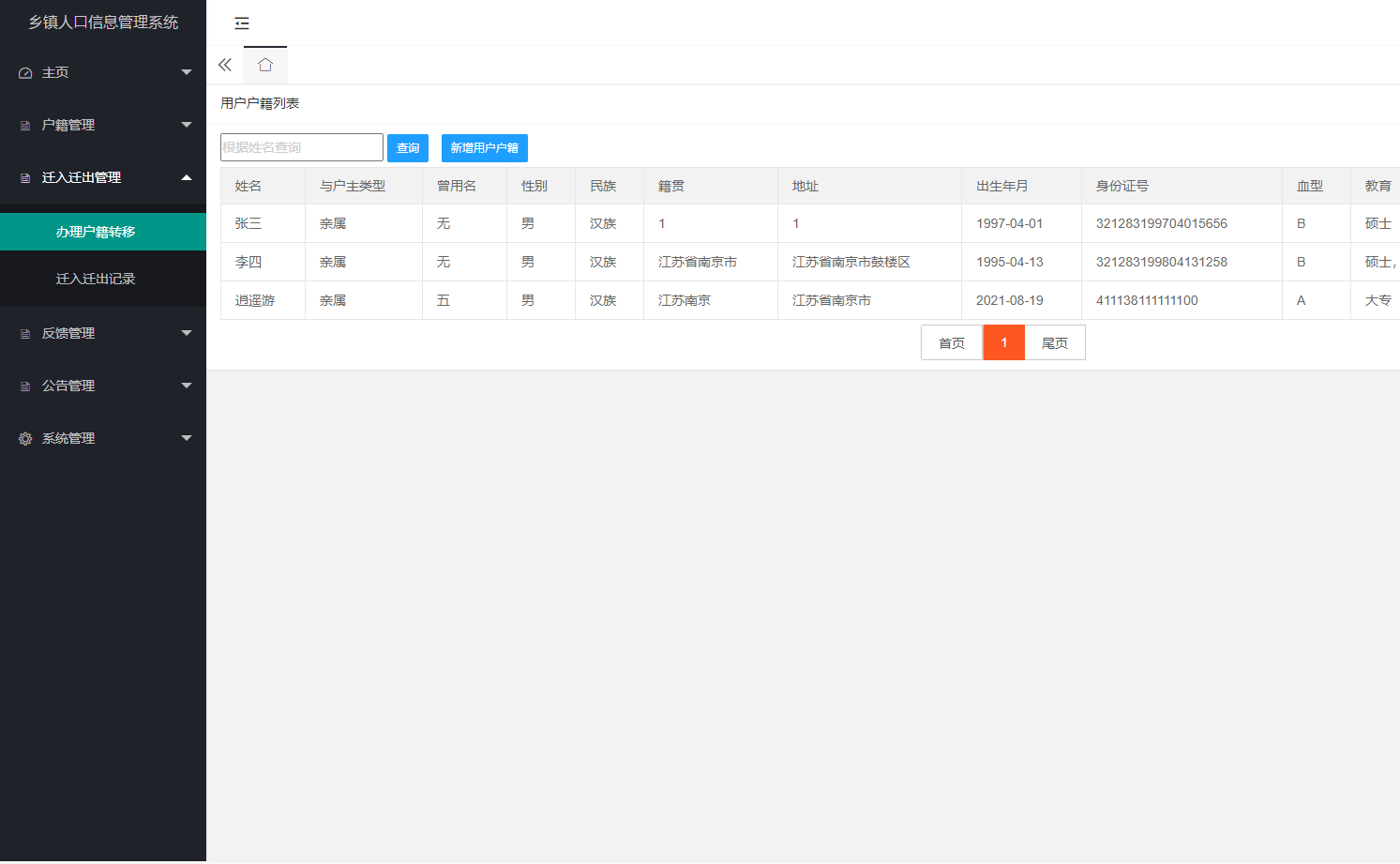 5.2.1 用户户籍列表