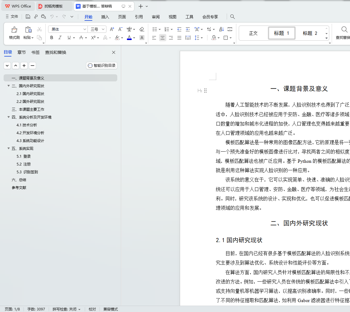 本文介绍了一种基于Python的模板匹配算法的人脸识别系统。该系统首先使用OpenCV库进行人脸检测和特征点提取,然后将提取出的特征点与预先存储在系统中的特征点模板进行匹配,从而实现人脸识别。该系统在实现上简单、易用,且具有较高的准确率。本文详细介绍了该系统的设计思路、实现方法以及实验结果,并对该系统进行了分析和评价。最后,本文指出了该系统存在的不足之处,并提出了改进方向。