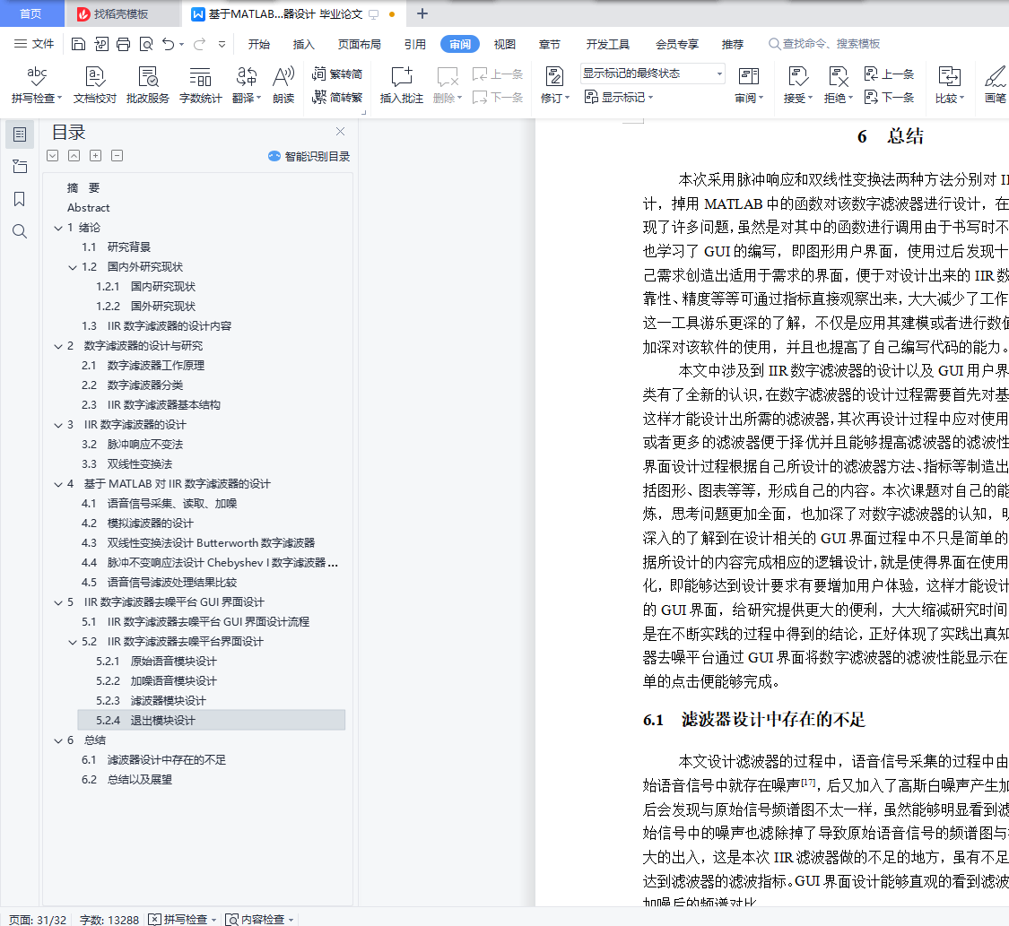 6.1 滤波器设计中存在的不足