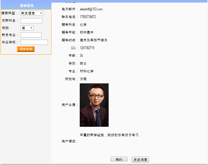 本家教信息管理系统主要是针对过去比较传统的家教模式进行的更新,结合互联网+的概念,将散乱的家教信息进行筛选整理达到规范化要求,便于有需求的学生或者学生家长根据个人需求搜索优质家教,也便于优秀的大学生等人寻找合适的家教工作。