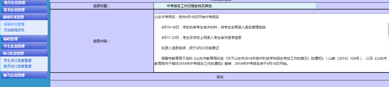The tutor information management system is mainly aimed at updating last traditional tutor mode, combined with the concept of Internet plus. It will collate messy tutor information in order to meet the standardization requirements, which can help students or parents of students search quality tutoring with their individual demands, facilitate the hunting of the right family education work for the outstanding college students and other people as well.