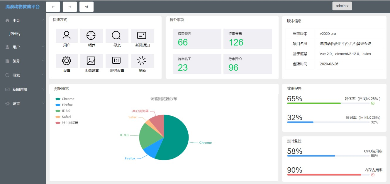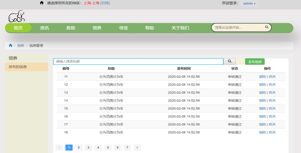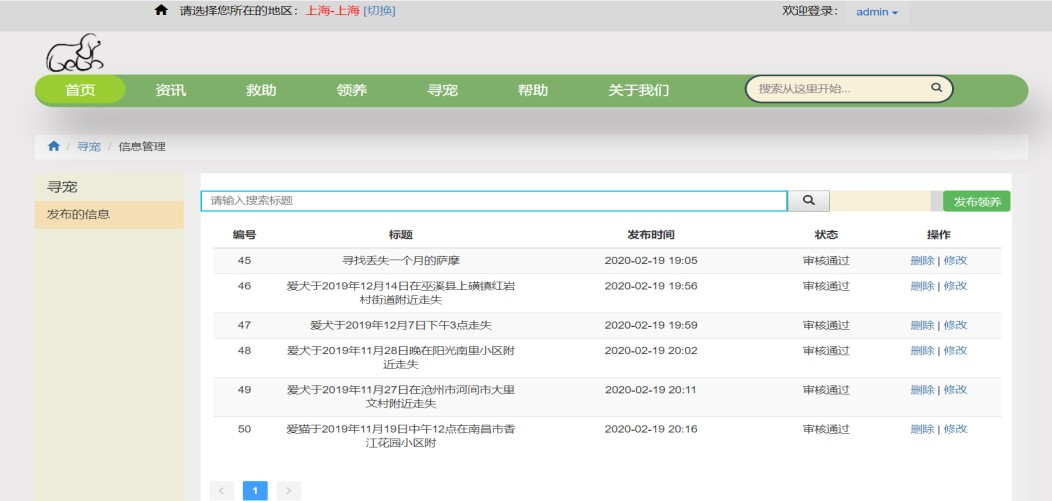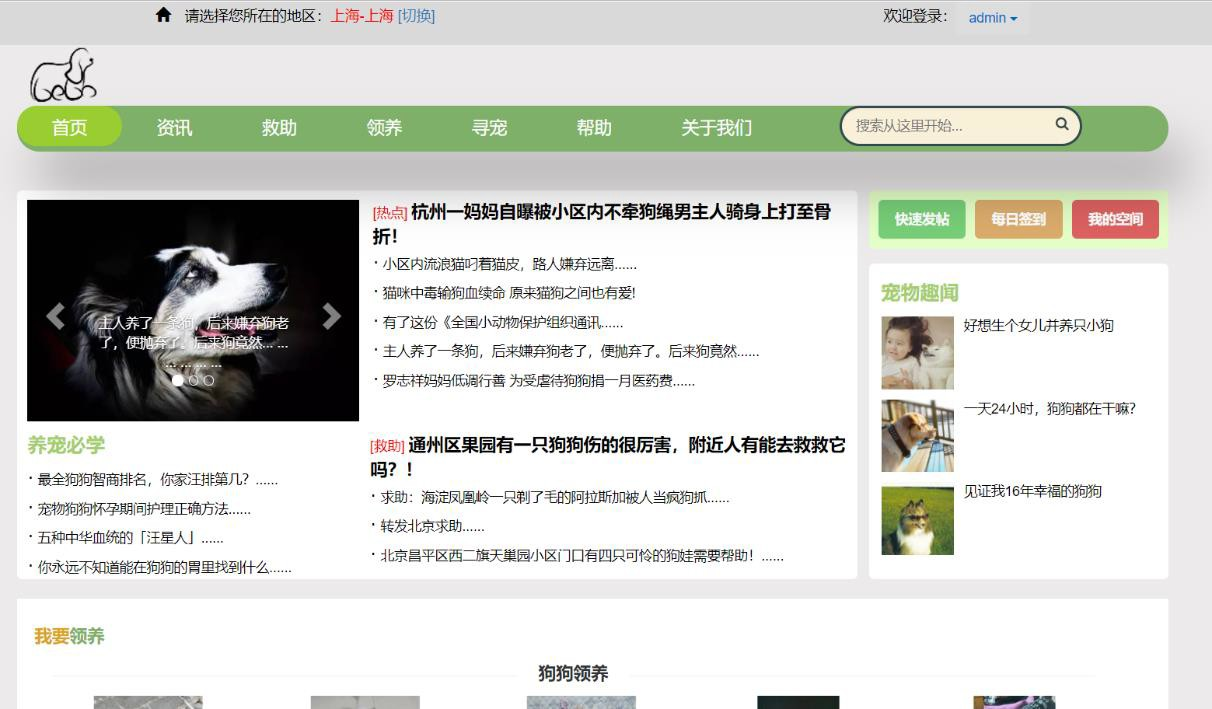 为解决流浪动物泛滥问题,各省市相继出现了许多公有或私有的救助站,但是因为区域限制、资金短缺、知名度小登问题,流浪动物救助、领养等爱心行为进展十分缓慢。流浪动物救助系统旨在利用网络的高效率、低成本和及时更新等特点,为爱心人士提供一个交易平台,同时也为流浪动物们提供一次新生的机会。