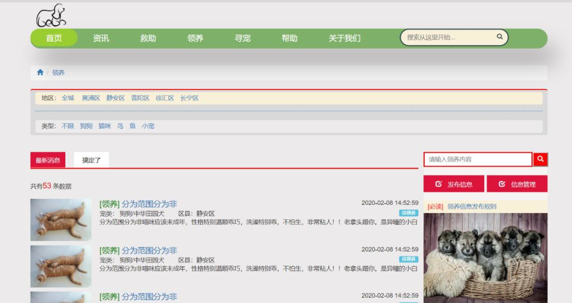 In order to solve the problem of the flood of stray animals, many public or private relief stations have appeared in various provinces and cities. However, due to regional restrictions, shortage of funds and small popularity, the love behaviors such as rescue and adoption of stray animals are very slow. The stray animal rescue system aims to provide a trading platform for the caring people of the Internet, but also to provide a new opportunity for stray animals.