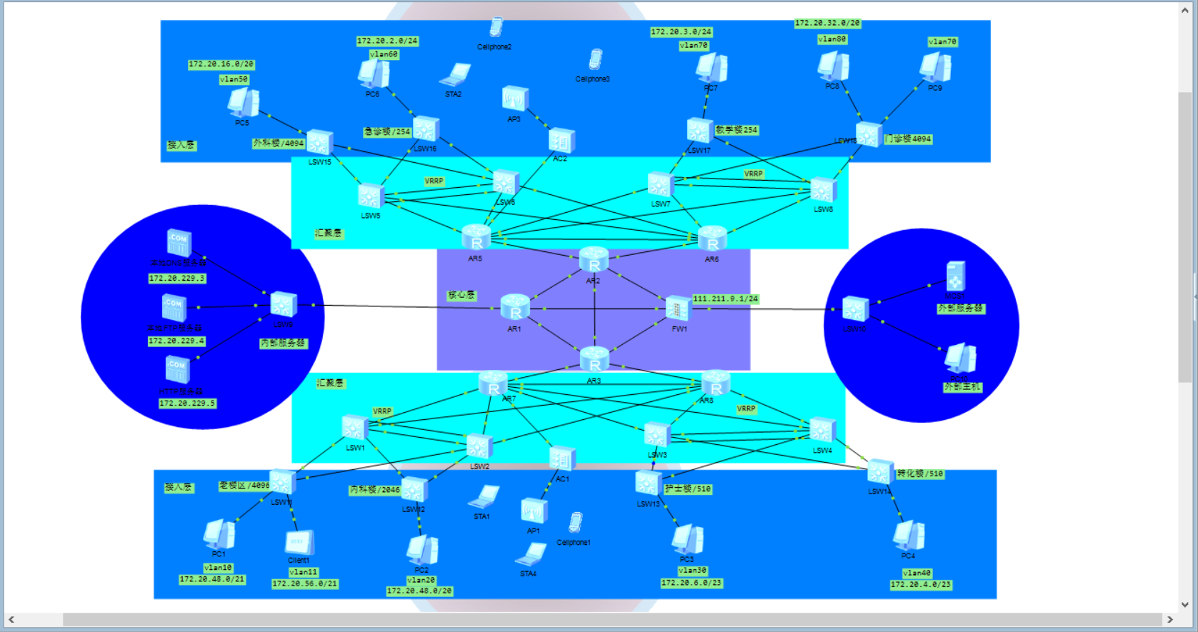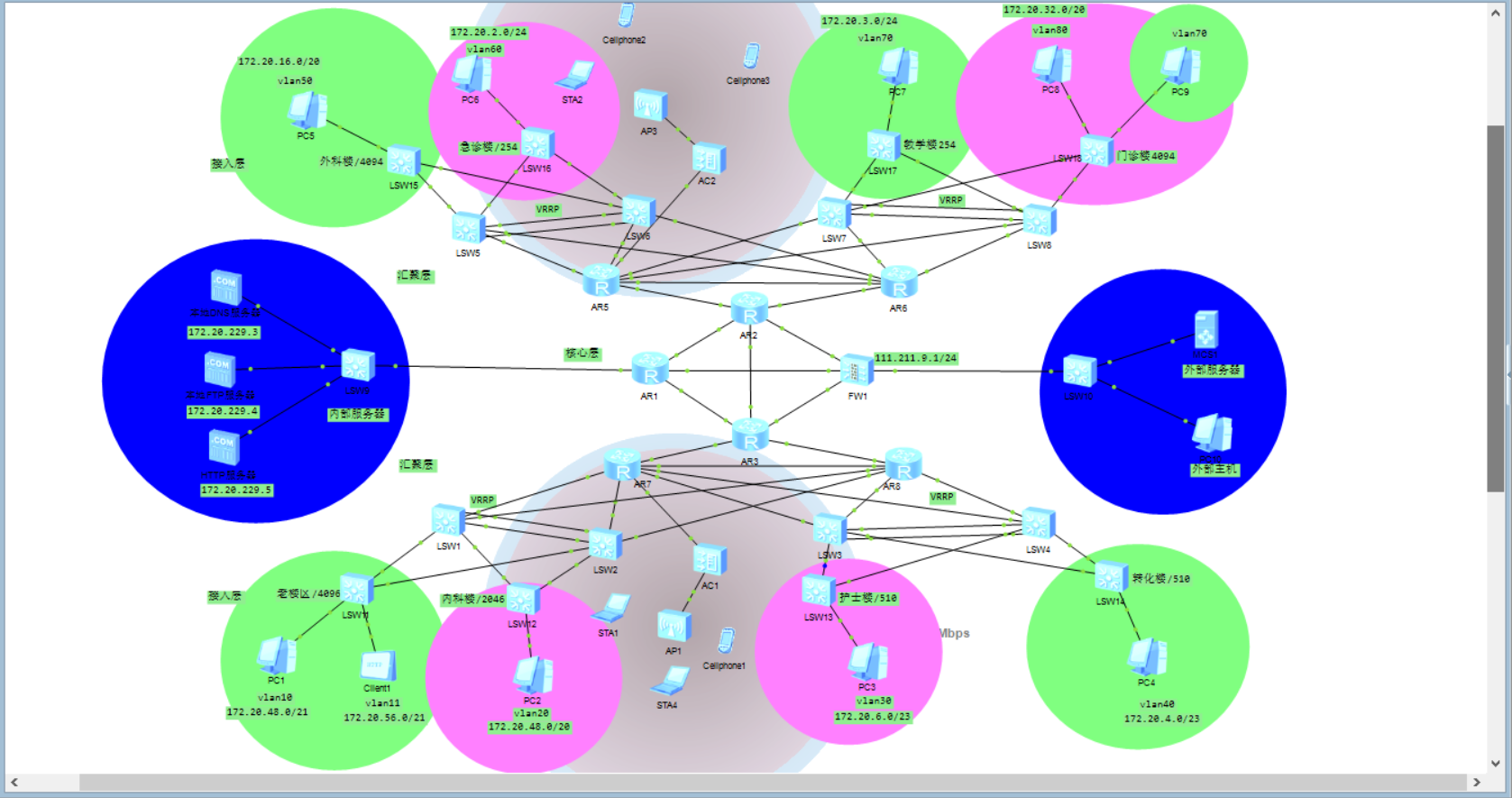 关键词:医院网络;网络规划,网络建设,综合布线,拓扑图