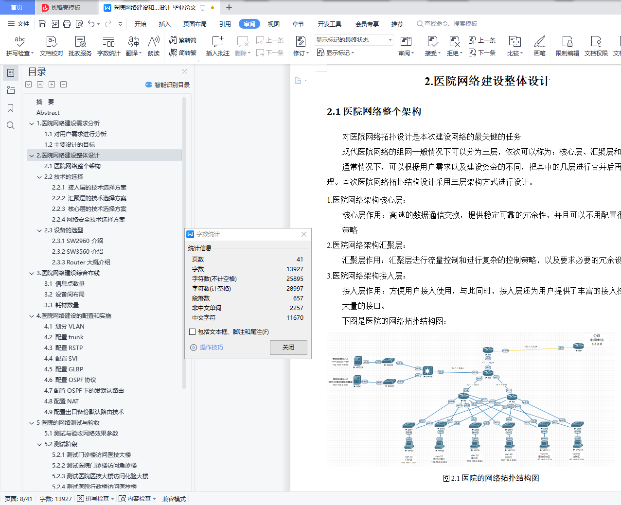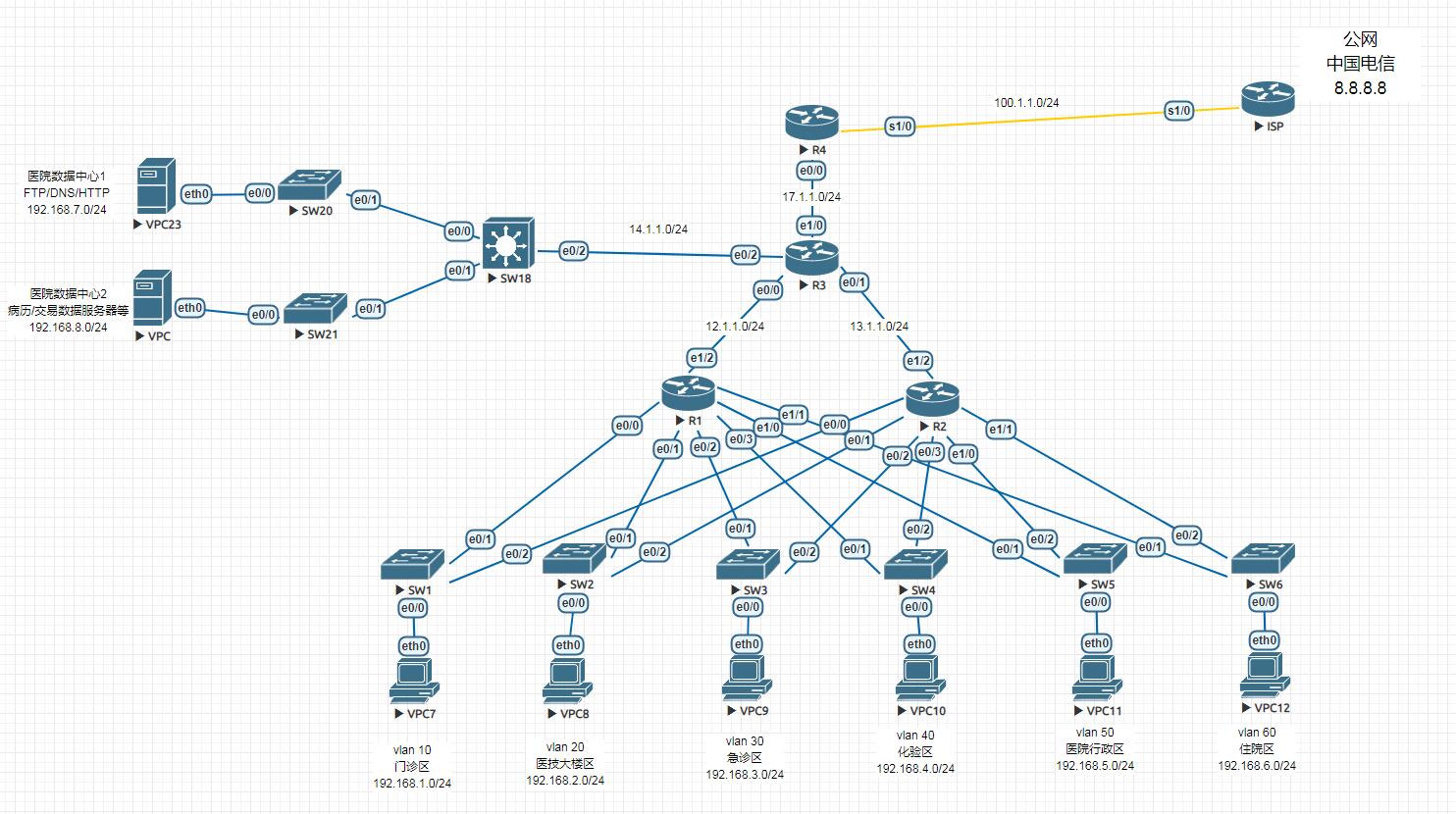 关键词:医院网络;网络规划,网络建设,综合布线,拓扑图