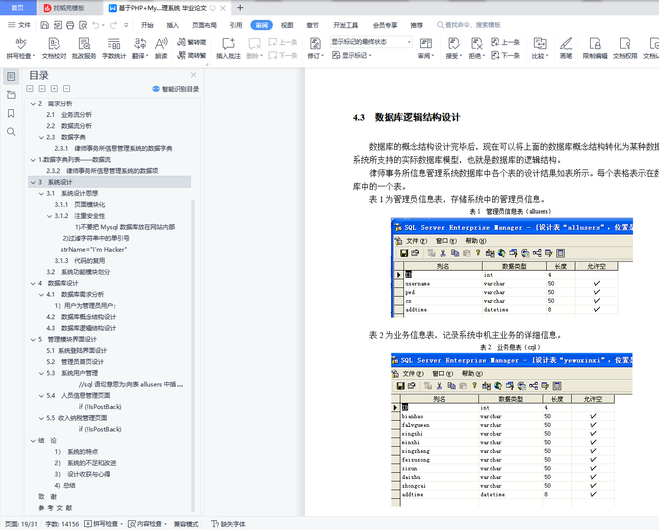 本系统是为律师服务企业设计开发的在线律师事务所信息管理系统,来研究基于B/S模式的网上律师业务管理的实现,采用的是PHP+Mysql模式的电子服务平台。律师服务是人们日常生活中不可或缺的服务,其管理问题一直都是人们所关心的问题。但是,这其中涉及的信息处理量过于大,一直没有适合的信息管理系统。然而,现在计算机技术和网络推广已经得到了很好的发展,各行各业都在不同程度地引进计算机及网络技术,以求在业务处理能力及服务能力方面做到更大进步。可以说,现下哪个企业不引进计算机信息管理系统,谁就在服务水平和业务水平方面逊于同行一筹了。