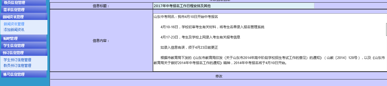 Abstract:The tutor information management system is mainly aimed at updating last traditional tutor mode, combined with the concept of Internet plus. It will collate messy tutor information in order to meet the standardization requirements, which can help students or parents of students search quality tutoring with their individual demands, facilitate the hunting of the right family education work for the outstanding college students and other people as well.