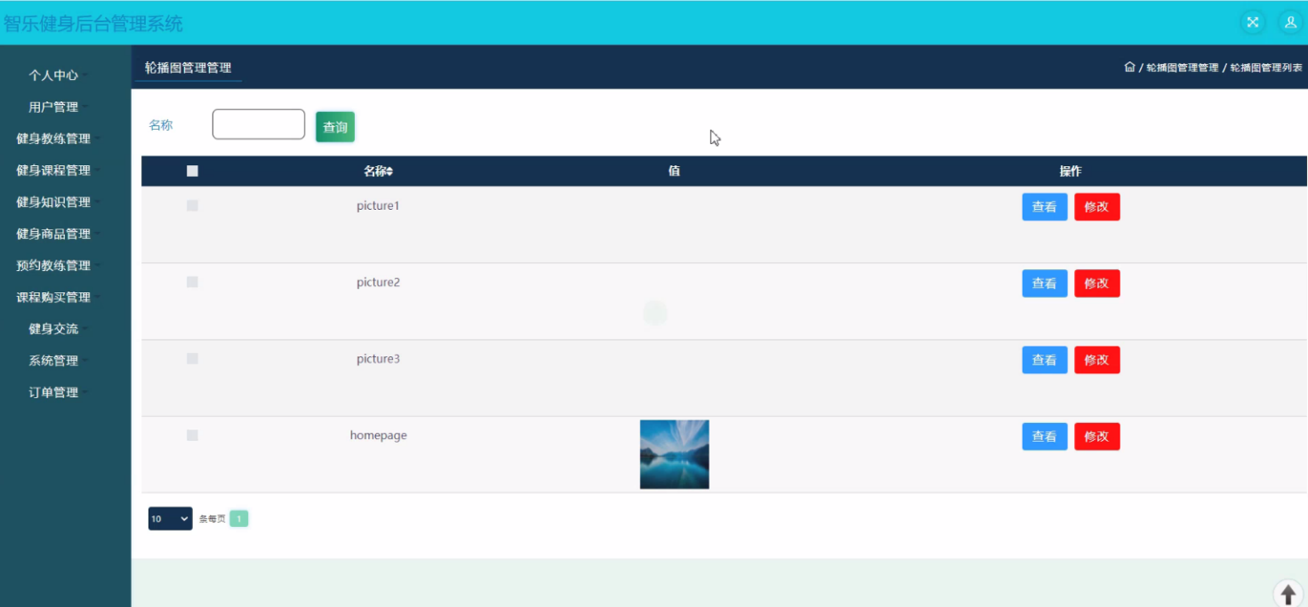 本网站系统使用动态网页开发Java作为系统的开发语言,MySQL作为后台数据库。设计开发了具有管理员;个人中心、用户管理、健身教练管理、健身课程管理、健身知识管理、健身商品管理、预约教练管理、课程购买管理、健身交流、系统管理、订单管理,用户;个人中心、预约教练管理、课程购买管理、我的收藏管理,前台首页;首页、健身教练、健身课程、论坛信息、我的、跳转到后台、购物车、在线客服等功能的智乐健身后台管理系统。在设计过程中,充分保证了系统代码的良好可读性、实用性、易扩展性、通用性、便于后期维护、操作方便以及页面简洁等特点。
