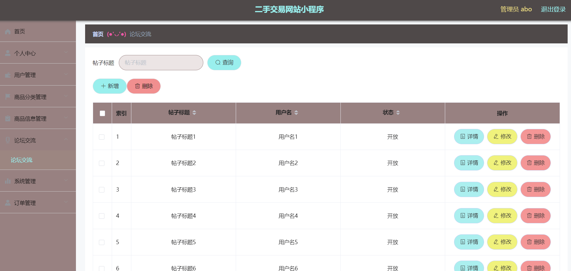 With the rapid development of China's economy, people's demand for mobile phones is growing, all kinds of mobile phone software are widely used, but for mobile phone data information management, all kinds of mobile phone software is also loved by users, campus second-hand transactions are widely used by users, in order to facilitate users to be able to carry out campus second-hand transaction data information management at any time, special open The second-hand transaction management system based on campus is developed.