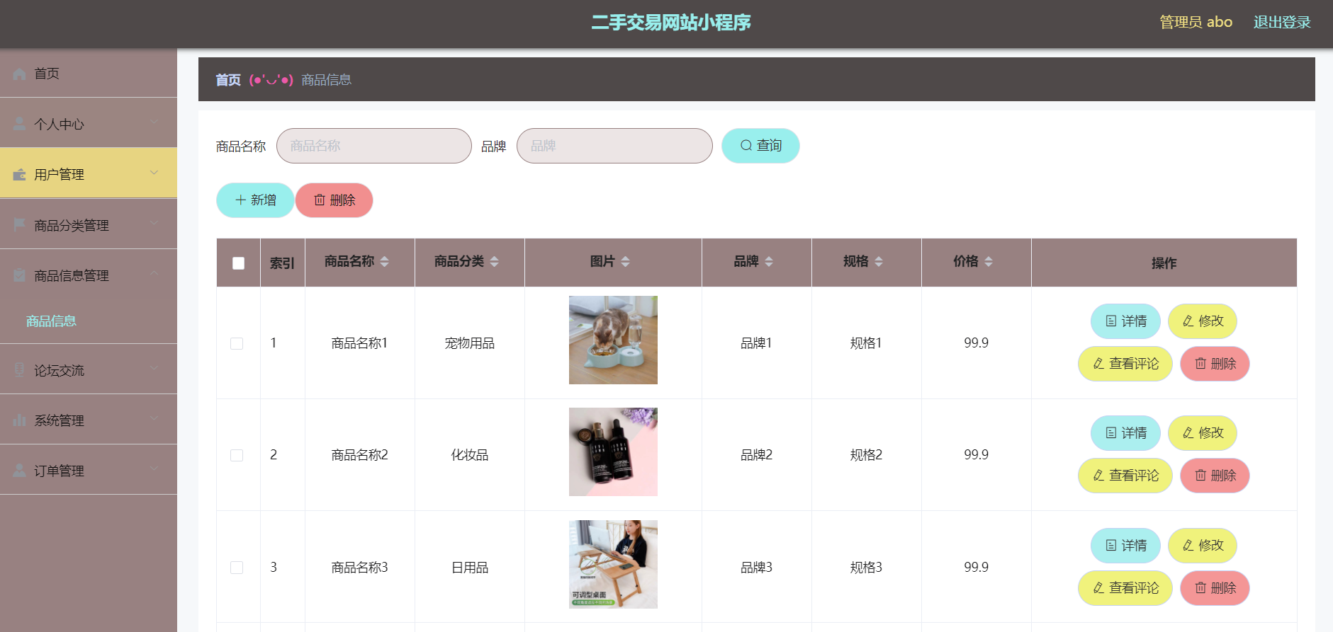 随着我国经济迅速发展,人们对手机的需求越来越大,各种手机软件也都在被广泛应用,但是对于手机进行数据信息管理,对于手机的各种软件也是备受用户的喜爱,校园二手交易被用户普遍使用,为方便用户能够可以随时进行校园二手交易的数据信息管理,特开发了基于校园二手交易的管理系统。