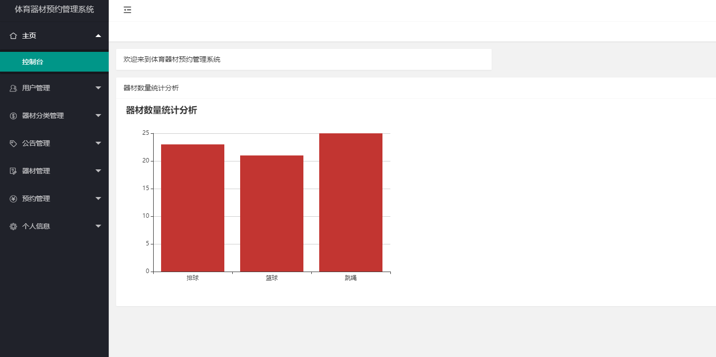 大部分高校都有着丰富的体育课,每当体育开课的时候,体育老师会安排一些学生去体育器材放置处去登记拿体育器材过来进行使用,过程非常繁琐,还要提前去借器材,而且要记录借用的器材物品信息,但是随着信息化技术的发展,过去人工纸质文档办理的方式已经不在成为主流,使用计算机借助软件系统不仅效率高,而且保存的数据更加持久,体育器材预约管理系统是一款帮助高校学生预约学校体育器材的管理系统,管理员在后台管理体育器材,然后学生或者老师再系统平台可以进行预约借用,然后用完之后进行归还,不需要在纸质文档记录,非常高效便捷。