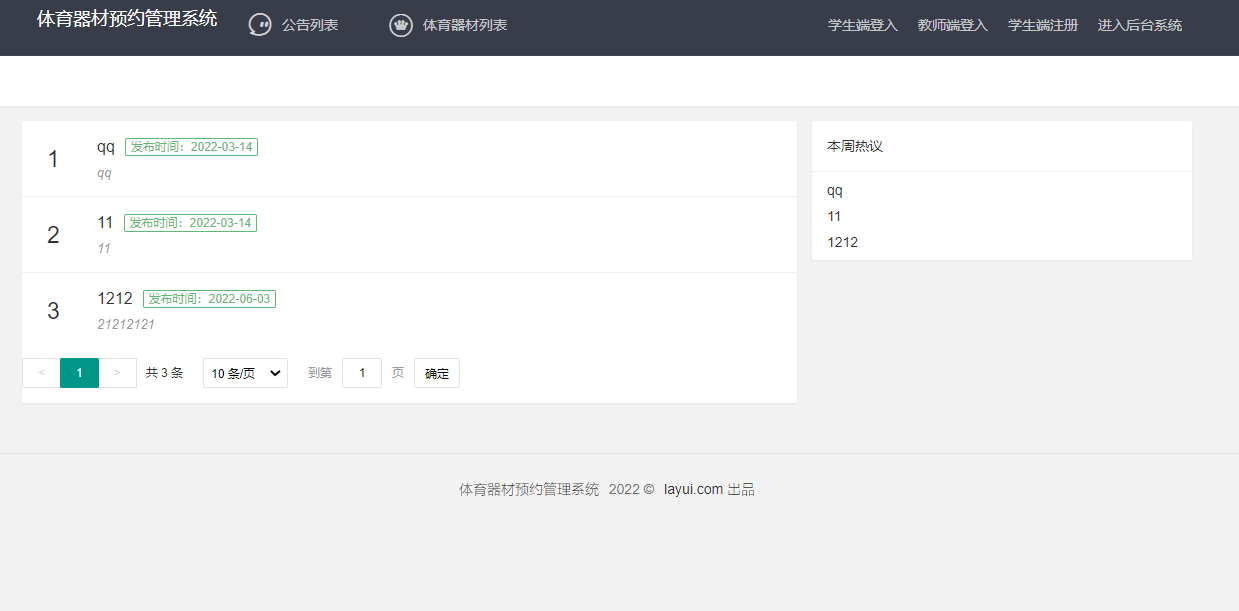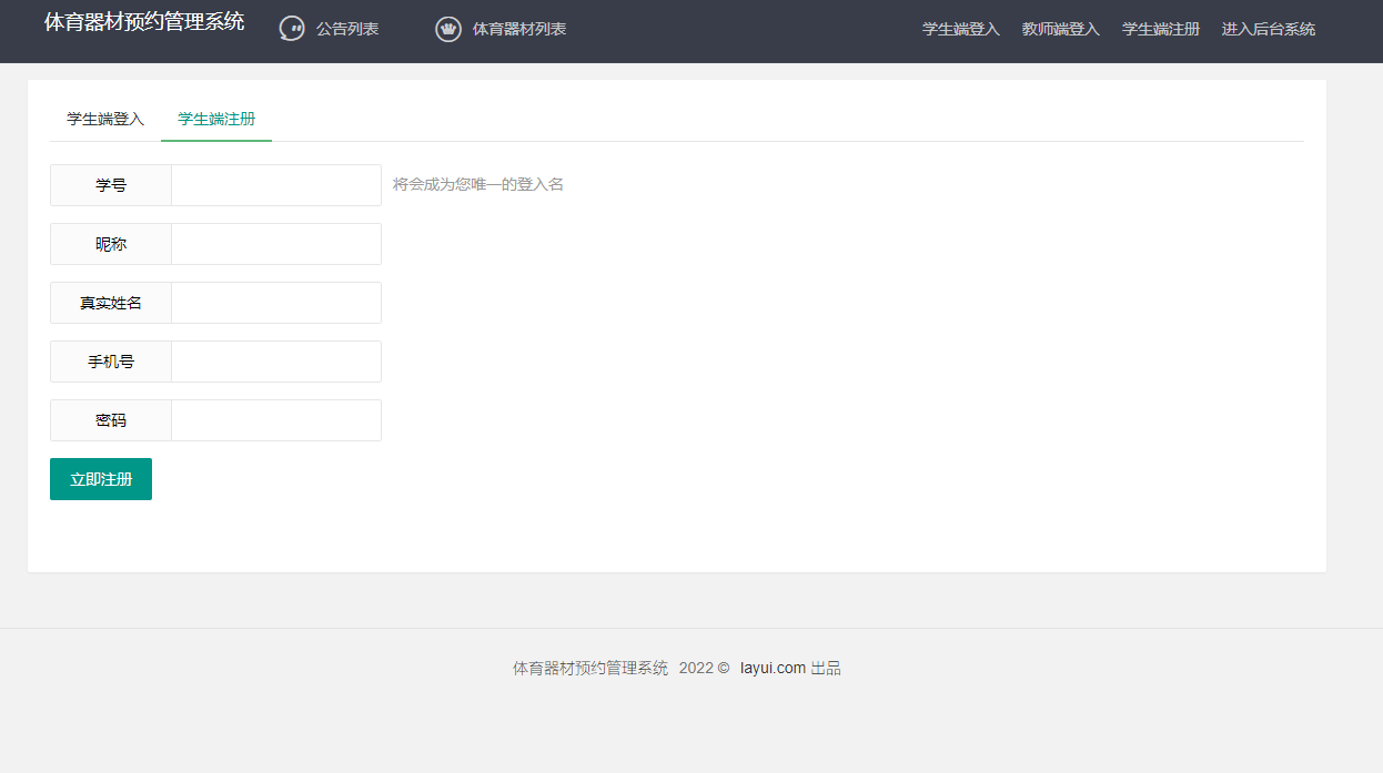 Most colleges and universities have rich physical education classes. Whenever physical education classes begin, physical education teachers will arrange some students to register at the place where sports equipment is placed and get sports equipment for use. The process is very cumbersome. They have to borrow equipment in advance and record the information of borrowed equipment and items. However, with the development of information technology, the manual paper document handling method has no longer become the mainstream in the past, Using the computer with the help of the software system is not only efficient, but also the saved data is more lasting. The sports equipment reservation management system is a management system to help college students make an appointment for school sports equipment. The administrator manages the sports equipment in the background, and then the students or teachers can make an appointment to borrow it on the system platform, and then return it after use. It does not need to be recorded in paper documents, which is very efficient and convenient.