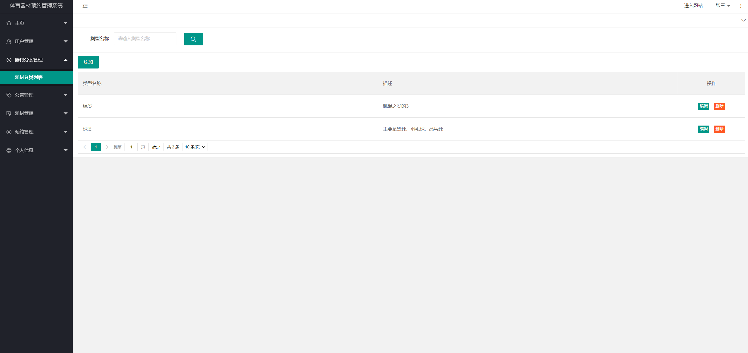 4.2.5体育器材类别管理模块详细设计