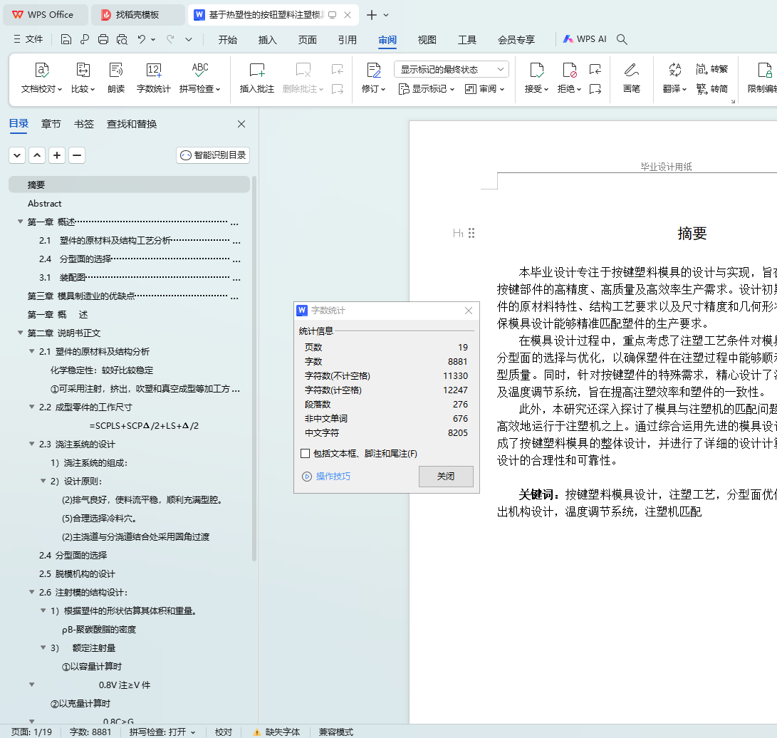 Key words: key press plastic mold design, injection molding process, classification surface optimization, pouring system design, launch mechanism design, temperature regulation system, injection molding machine matching