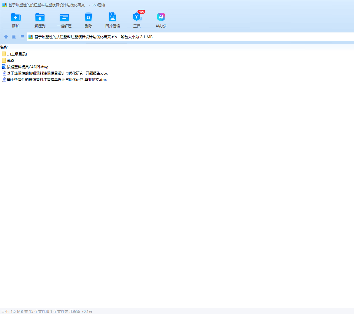 关键词:按键塑料模具设计,注塑工艺,分型面优化,浇注系统设计,推出机构设计,温度调节系统,注塑机匹配