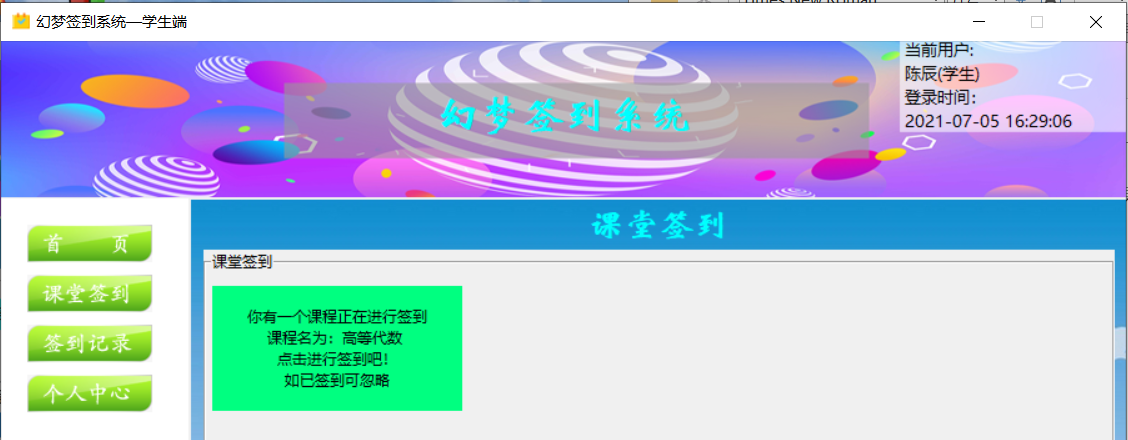 随着学校学生的人数的不断增加,传统的人工考勤已很难满足学校规范化管理的要求,面对庞大的信息量,该方式现也存在很多弊端。因此,建立现代化的智能考勤管理系统势在必行。而开发学生签到管理系统,正是完善高校考勤信息化管理的重要环节之一。这样也大大减轻了考勤工作人员的工作量,提高了工作效率,使原本复杂和枯燥无味的工作变得简单而轻松。