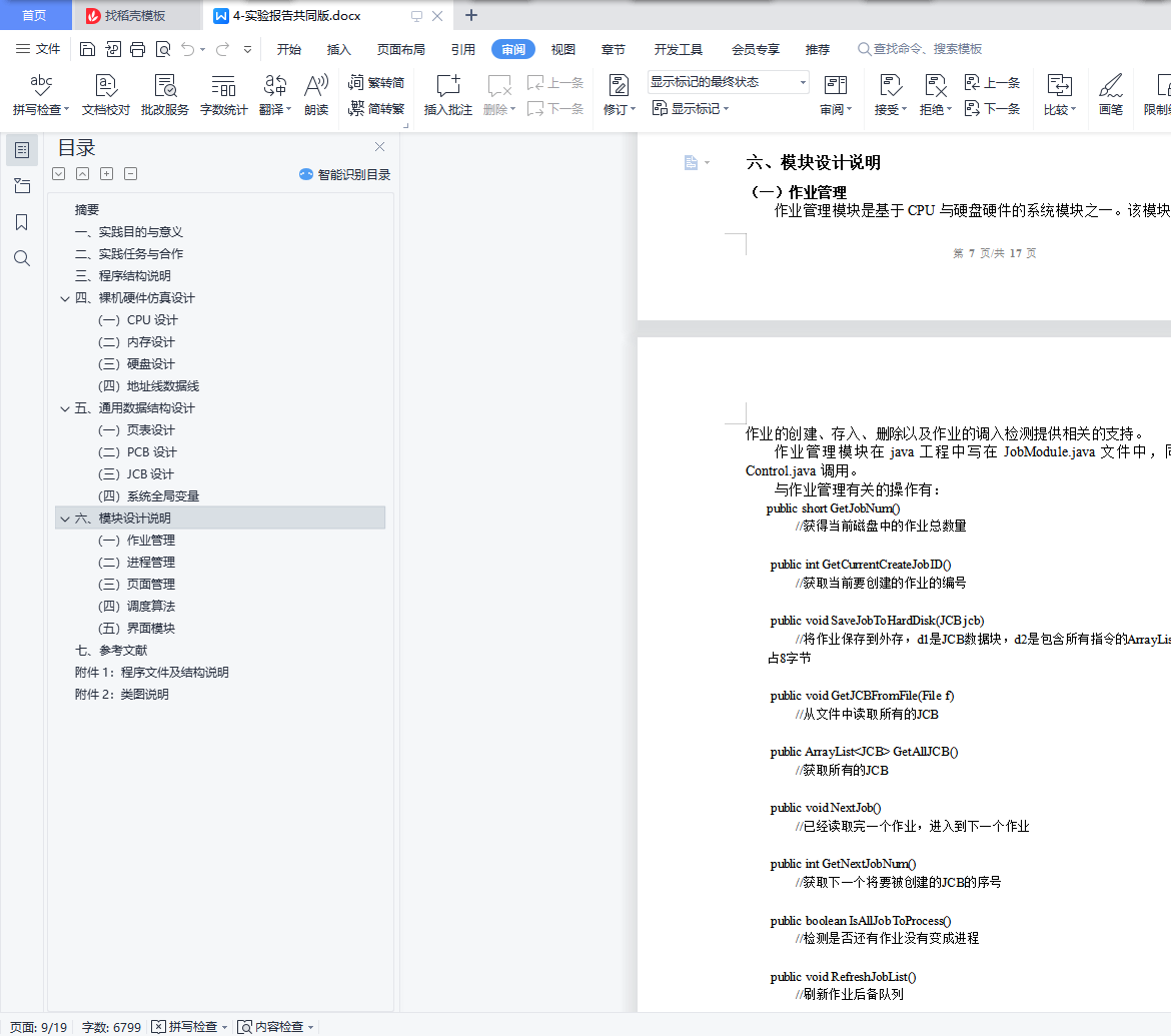 系统管理模块分为作业管理、进程管理与页面管理。作业管理模块是基于CPU与硬盘硬件的系统模块之一。该模块的功能是为作业的创建、存入、删除以及作业的调入检测提供相关的支持。作业管理模块在java工程中写在JobModule.java文件中,同时该类被Control.java调用。
