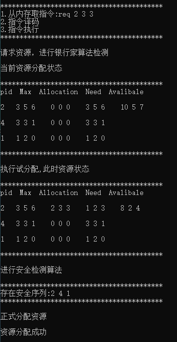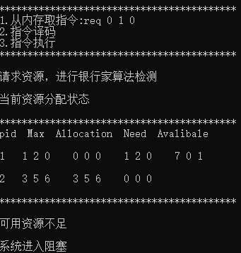 为了真实模拟计算机的运作,我们的进程是可以正是运行的。运行方式是根据我们自定义的指令集来运作。当然,我们也做了申请资源模拟,银行家算法自然不能缺少。