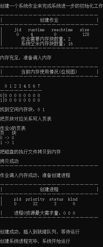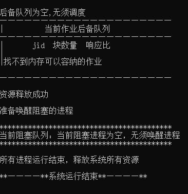 处理机调度包括作业调度和进程调度两个部。作业调度采用高响应比优先调度算法,进程调度采用抢占式优先级调度算法。
