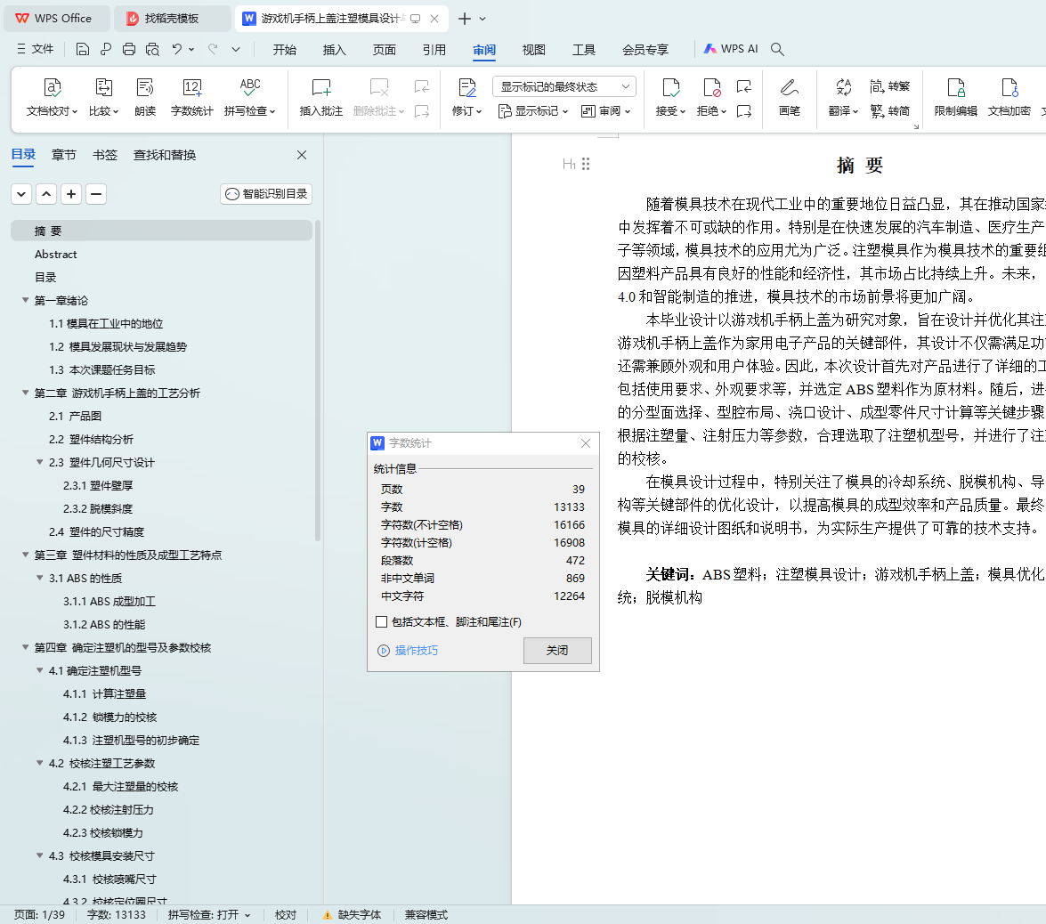 Key words: ABS plastic; injection mold design; top cover of game controller; mold optimization; cooling system; mold release mechanism