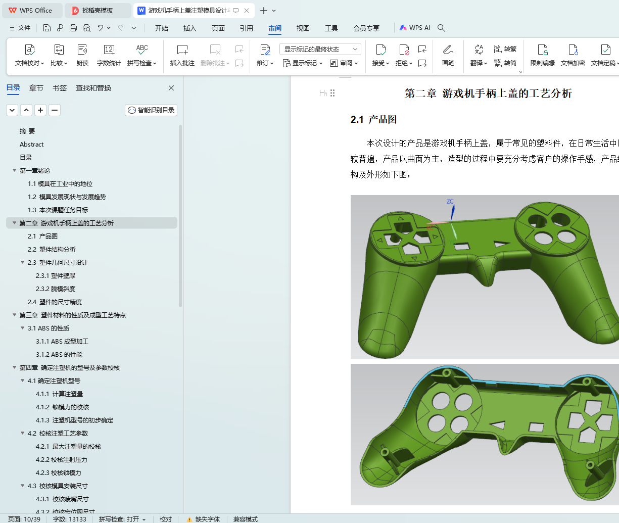 关键词:ABS塑料;注塑模具设计;游戏机手柄上盖;模具优化;冷却系统;脱模机构