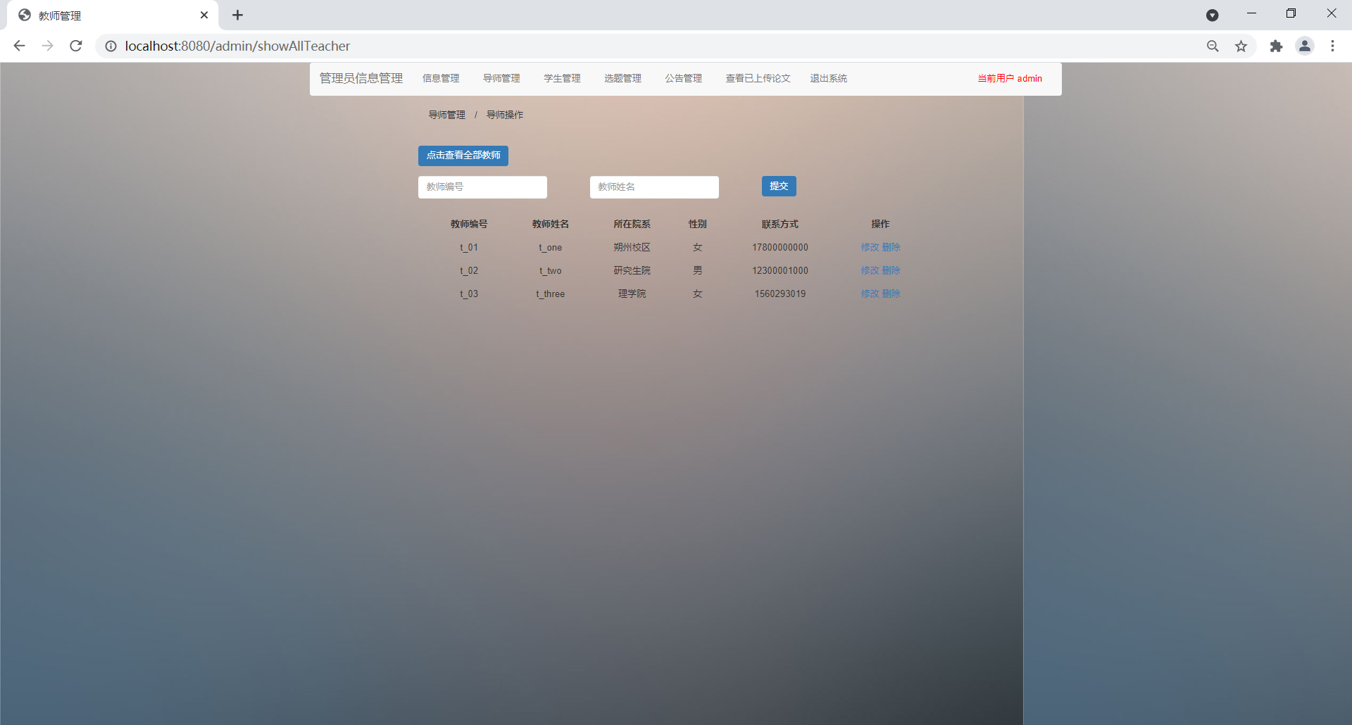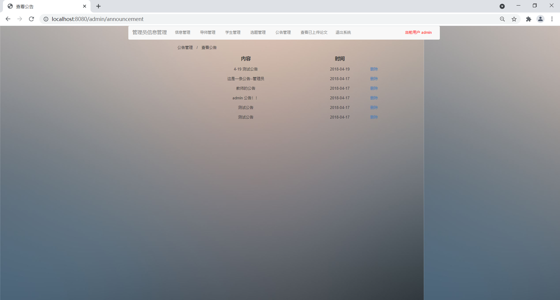 计算机技术高度发达的今天,利用信息技术对大量复杂的信息进行有效的管理成为一种普遍而实用的手段。一方面,这极大的减少了簿记和人力的开销,另一方面,现代计算机强大的计算能力和网络的普遍部署,大大简化了大量信息的处理和流动。每年毕业临近时,都有优良的毕业生需要进行毕业设计,这其中的首要关节就是课题的选择,以往指导老师都是采用人工手写方式给学生们提供相关的毕业课题提供学生选择,如果指导老师带领的学生比较多,或者是当年毕业的学生比较多,这样就造成学生的毕业课题选择很混乱,指导老师难于统计学生的毕业课题选择情况等一系列问题,基于这些传统问题,我们需要一个能够自动统计,实时分配课题的一个管理平台来帮助学生、指导老师。