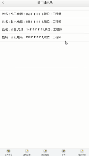 基于安卓开发企业员工管理app的开发过程中,技术方面主要采用了Android、B/S结构、Java技术以及Mysql数据库进行开发设计,利用这些技术来实现用户的需求以及功能。该开发企业员工管理app的开发设计主要包括手机端和服务端两部分。其主要功能包括用户:个人中心、我的帖子、发布帖子、我的工资、部门通讯录、密码修改。管理员:个人中心、通知公告管理、员工管理、内部讨论管理、任务管理、资询管理等功能。