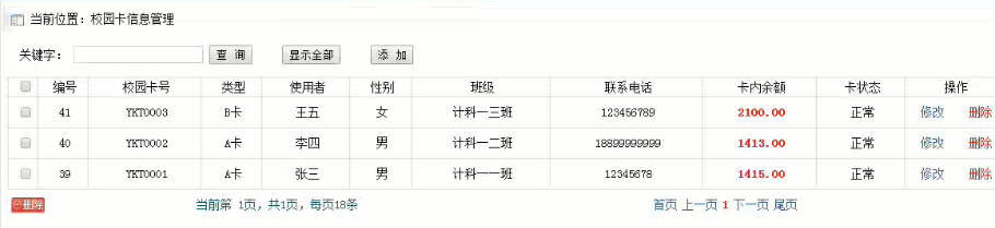 5.3.3 校园卡信息管理模块实现