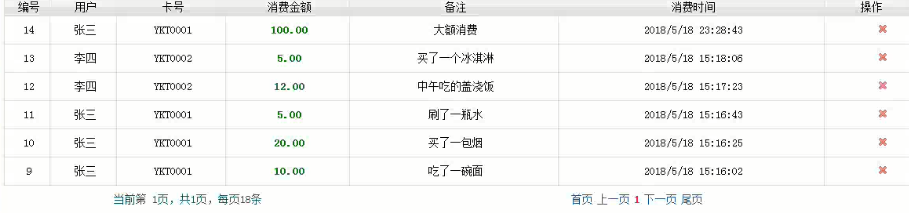 5.3.4 消费信息管理模块实现