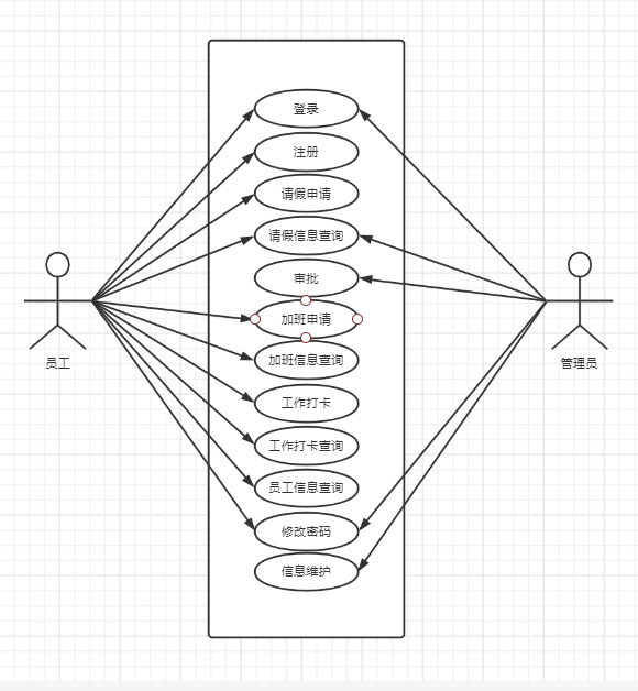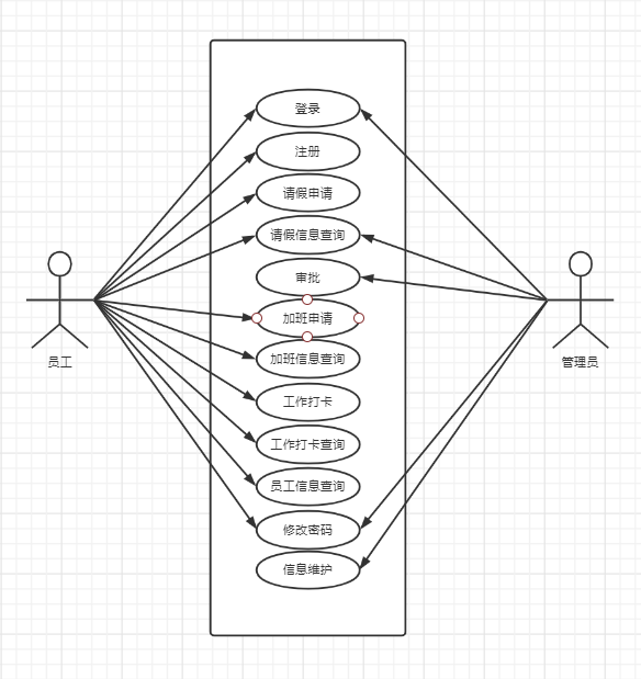 实现员工加班、请假,考勤等相关功能,具体包括: