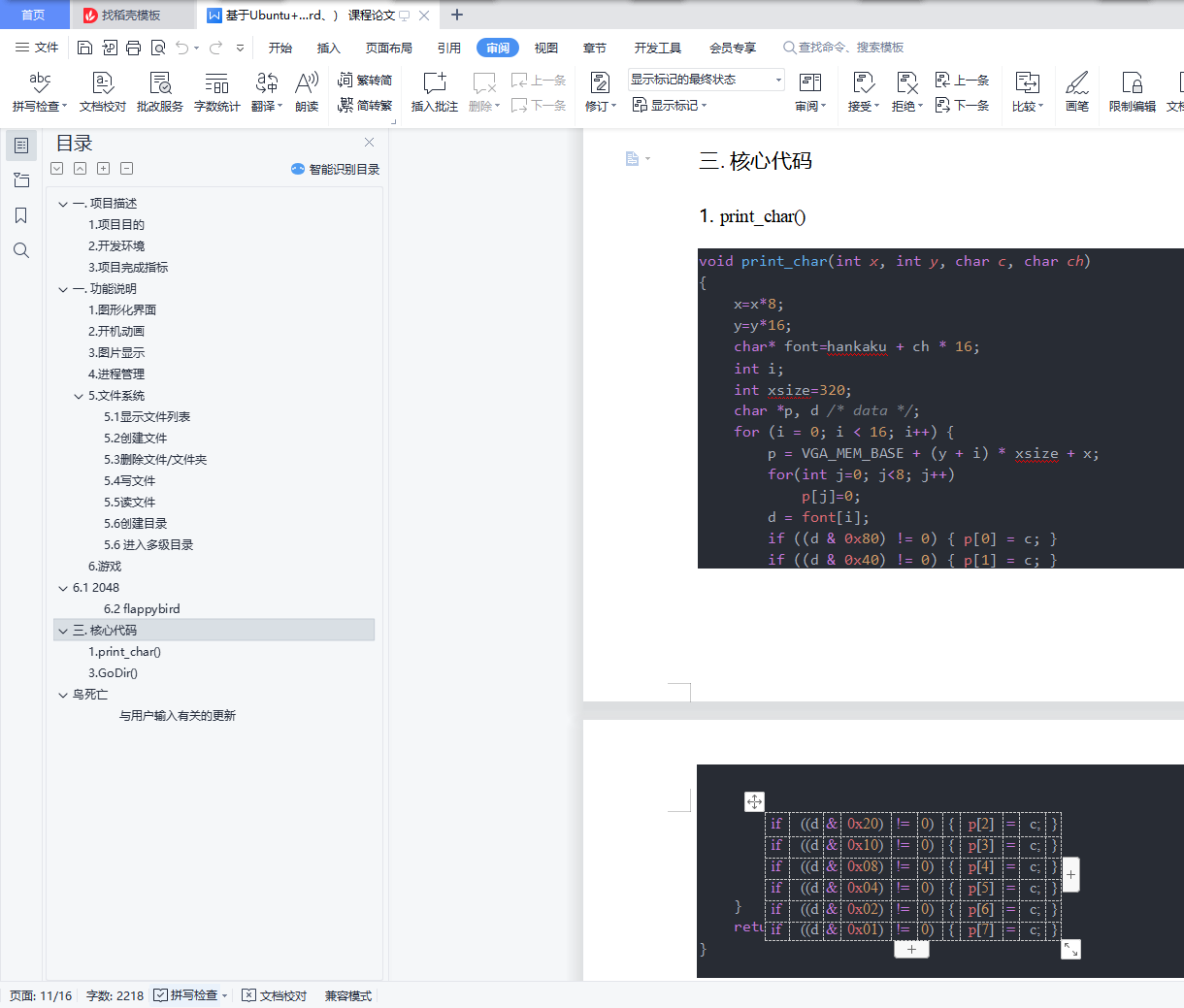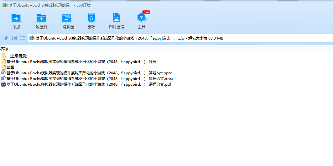 本次课程设计主要实现了图形化,对外设管理部分进行重新实现,实现了 B 级项目难度;同时对文件系统进行修改,支持多级文件系统,实现了 B 级难度; 并实现了显示图片和保存图片等系统级应用,实现了 C 级难度;最后在图形化的基础上实现了一个图形化的小游戏,完成了 D 级难度。