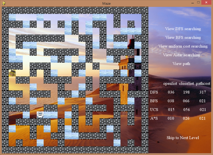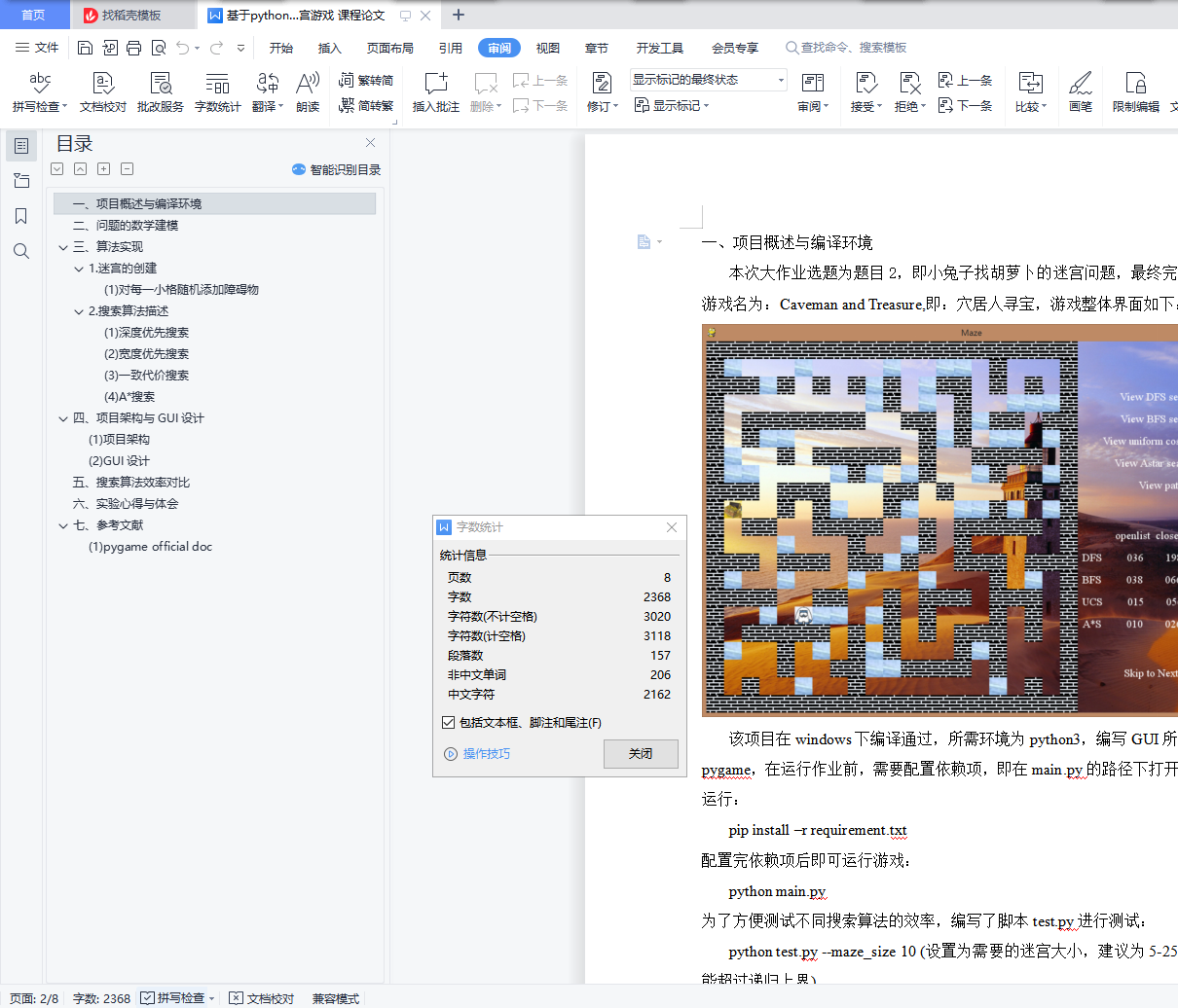 本次大作业选题为题目2,即小兔子找胡萝卜的迷宫问题,最终完成开发的游戏名为:Caveman and Treasure,即:穴居人寻宝,游戏整体界面如下: