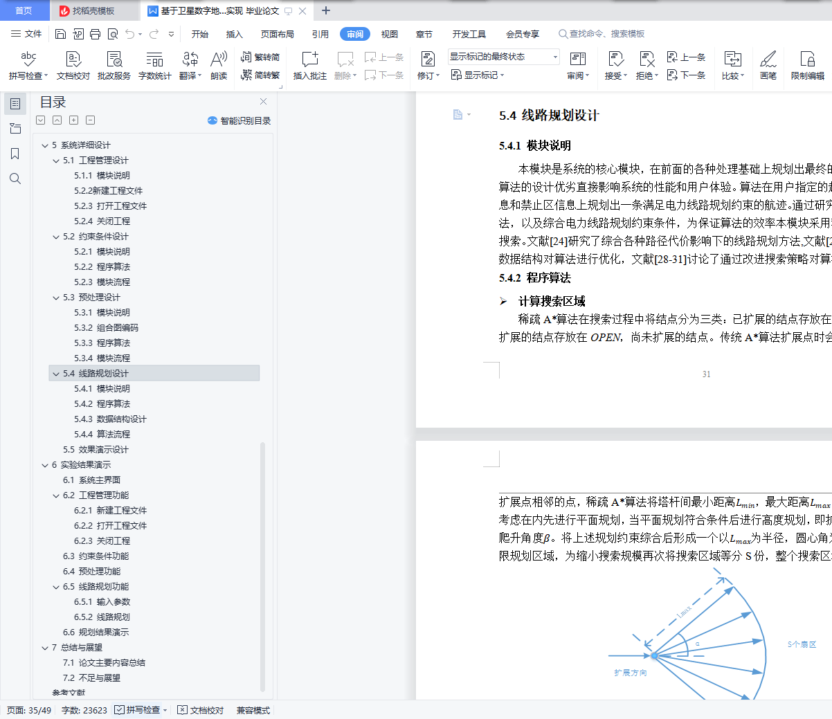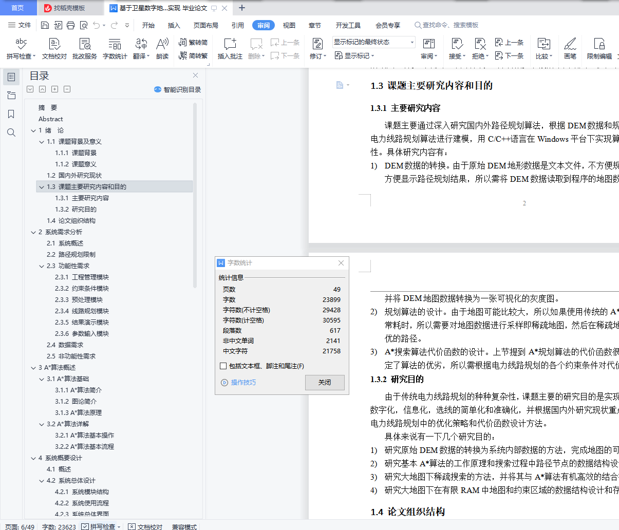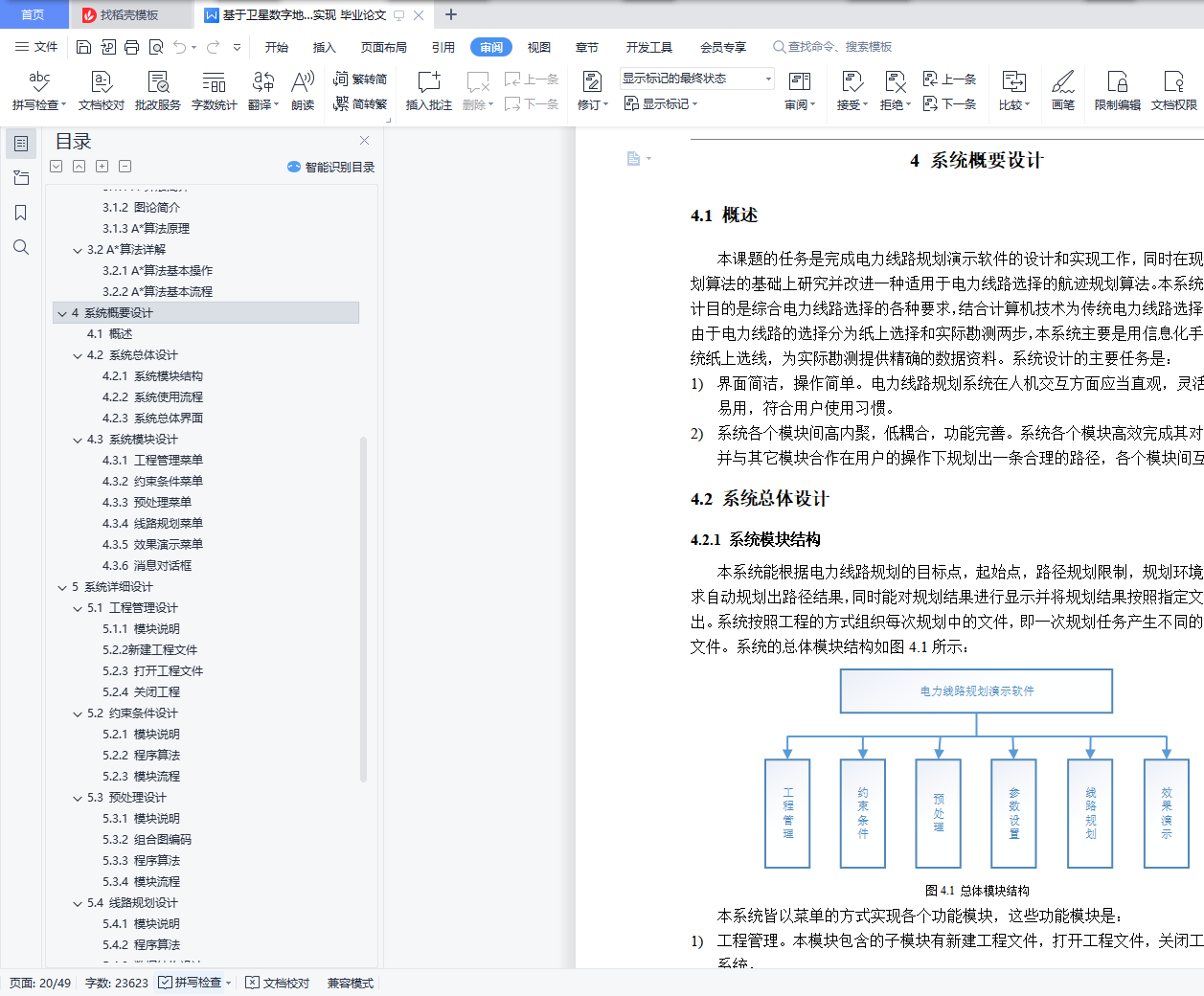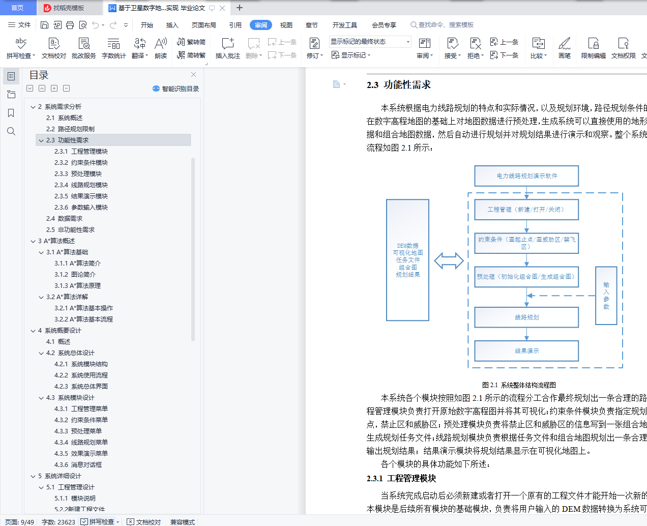 目 录摘 要 IAbstract 21 绪 论 11.1 课题背景及意义 11.2 国内外研究现状 21.3 课题主要研究内容和目的 21.4 论文组织结构 32 系统需求分析 32.1 系统概述 32.2 路径规划限制 42.3 功能性需求 52.4 数据需求 72.5 非功能性需求 73 A*算法概述 93.1 A*算法基础 93.2 A*算法详解 12RELAX-EDGE 136. 13PRINT-PATH(G,s,t) 133.2.2 A*算法基本流程 131. INITIALIZE-SOURCE(G,s,t) 132. 138. PRINT-PATH(G,s,t) 144 系统概要设计 164.1 概述 164.2 系统总体设计 164.3 系统模块设计 185 系统详细设计 255.1 工程管理设计 255.2 约束条件设计 285.3 预处理设计 295.4 线路规划设计 315.5 效果演示设计 376 实验结果演示 386.1 系统主界面 386.2 工程管理功能 386.3 约束条件功能 396.4 预处理功能 406.5 线路规划功能 406.6 规划结果演示 417 总结与展望 437.1 论文主要内容总结 437.2 不足与展望 43参考文献 44