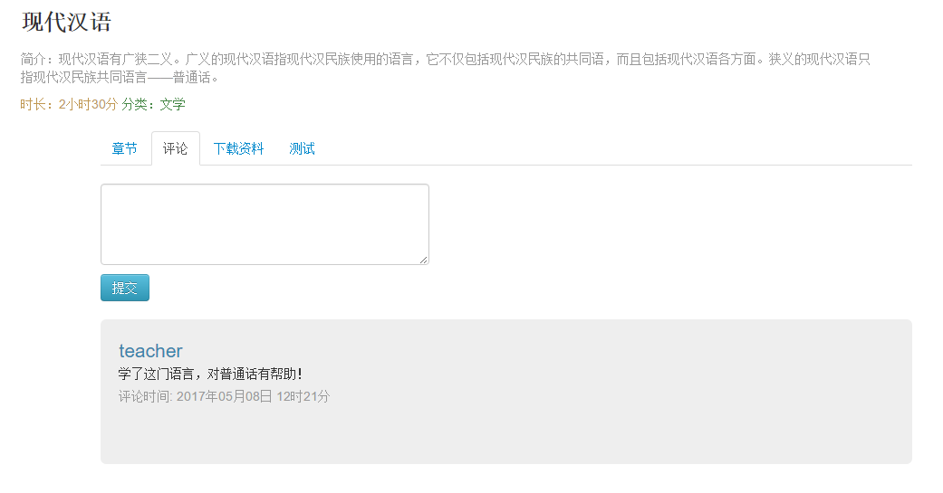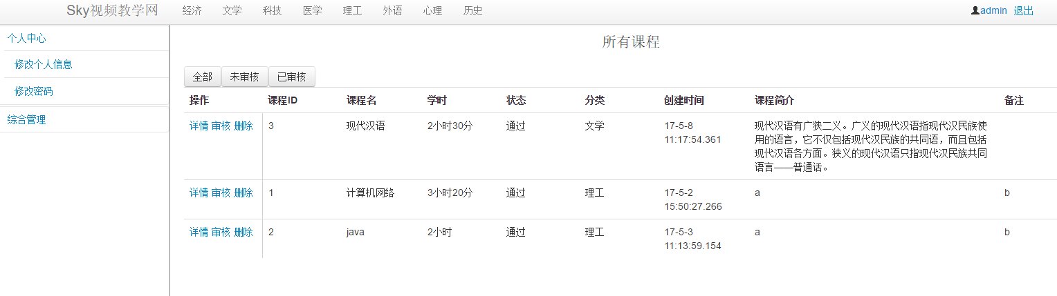 [摘要] 在大数据时代,要跟上时代的潮流,不能止步于传统的课堂教学。随着网络的进一步发展,网络课堂已经成为必然趋势。本文介绍了使用面向对象设计的方法,实现教师添加课程并对课程进行管理、添加测试、上传课件等功能,同时设立管理员对教师和视频教学课程进行审核和管理。前端使用流行的Bootstrap前端框架来快速搭建页面,后台使用Struts2, Spring, Hibernate框架来实现视频教学平台,以实现教育资源的共享的目的。最终完成了使用面对象的方法和SSH框架来实现视频教学平台的基本功能。