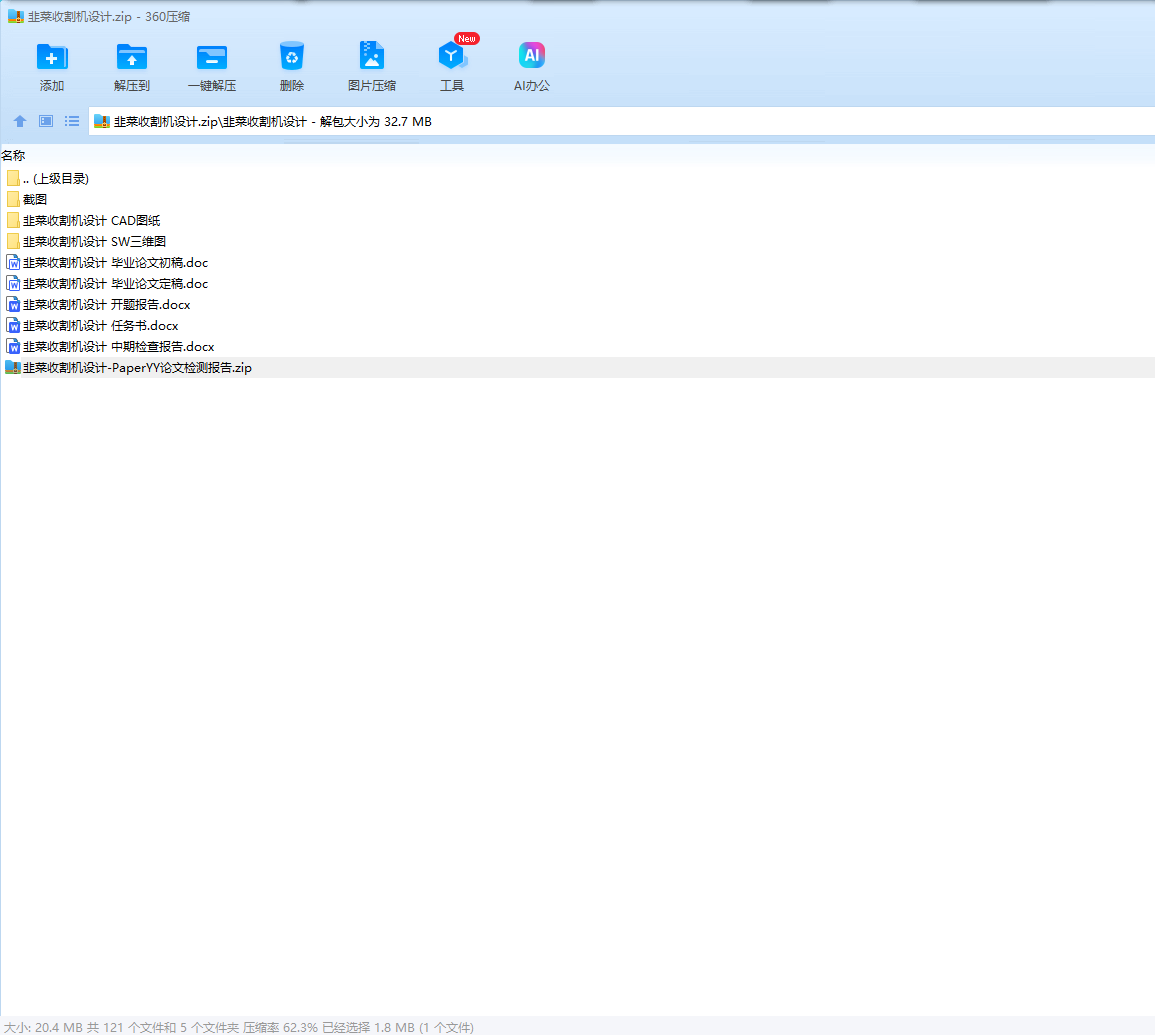 本选题来源于我国农业机械化发展的实际需求以及对现有韭菜收割机技术的深入分析和研究。考虑到我国韭菜种植业的广泛分布和日益增长的市场需求,现有的韭菜收割机在功能和效率上仍有待提升。因此,本研究旨在设计一种新型韭菜收割机,以满足小企业和菜农对高效、稳定、低损伤收割设备的需求。选题不仅关注技术创新,还着重考虑了机械功能的稳定性、操作便捷性和成本效益,以推动韭菜收割技术的持续发展。