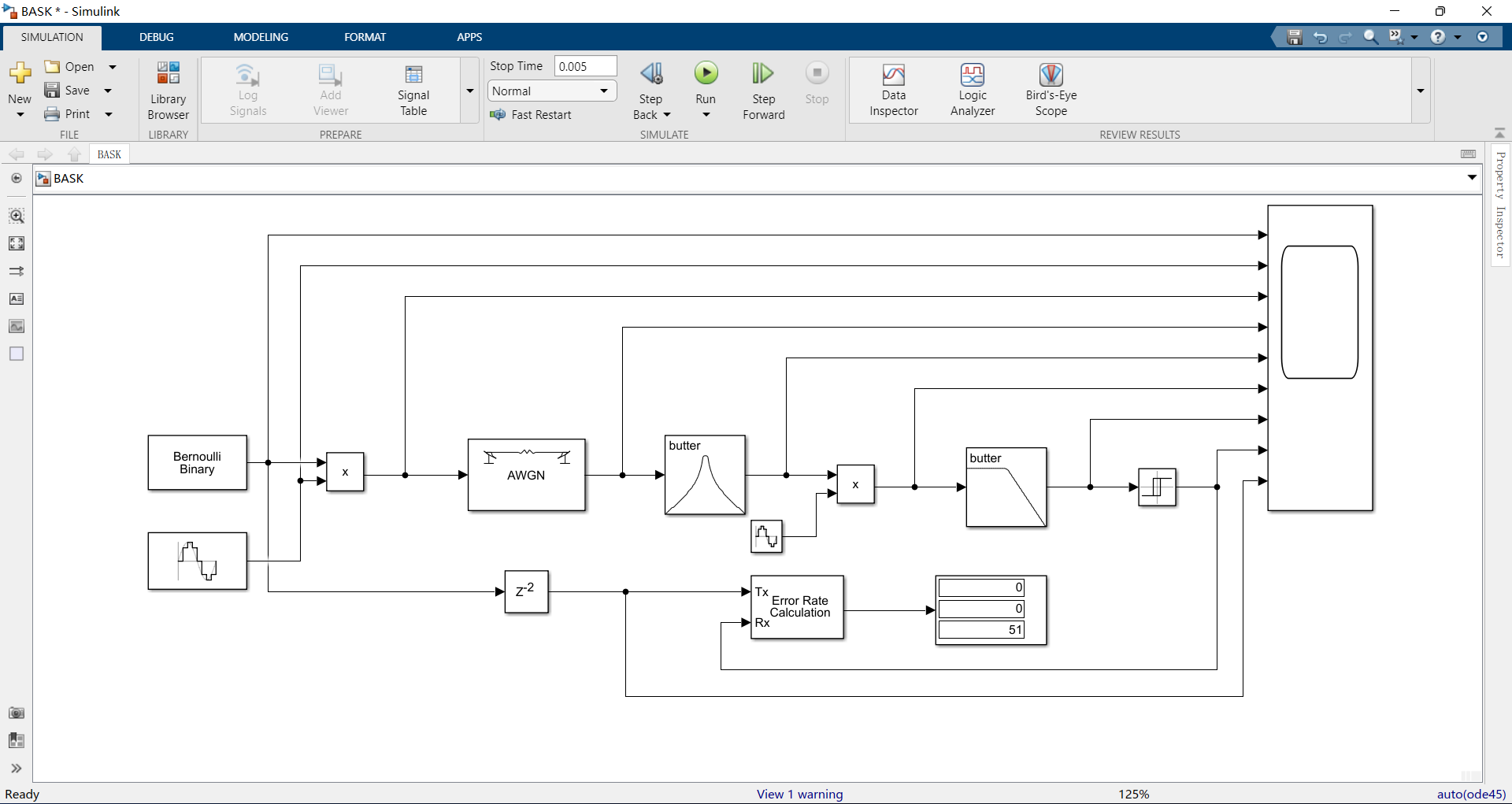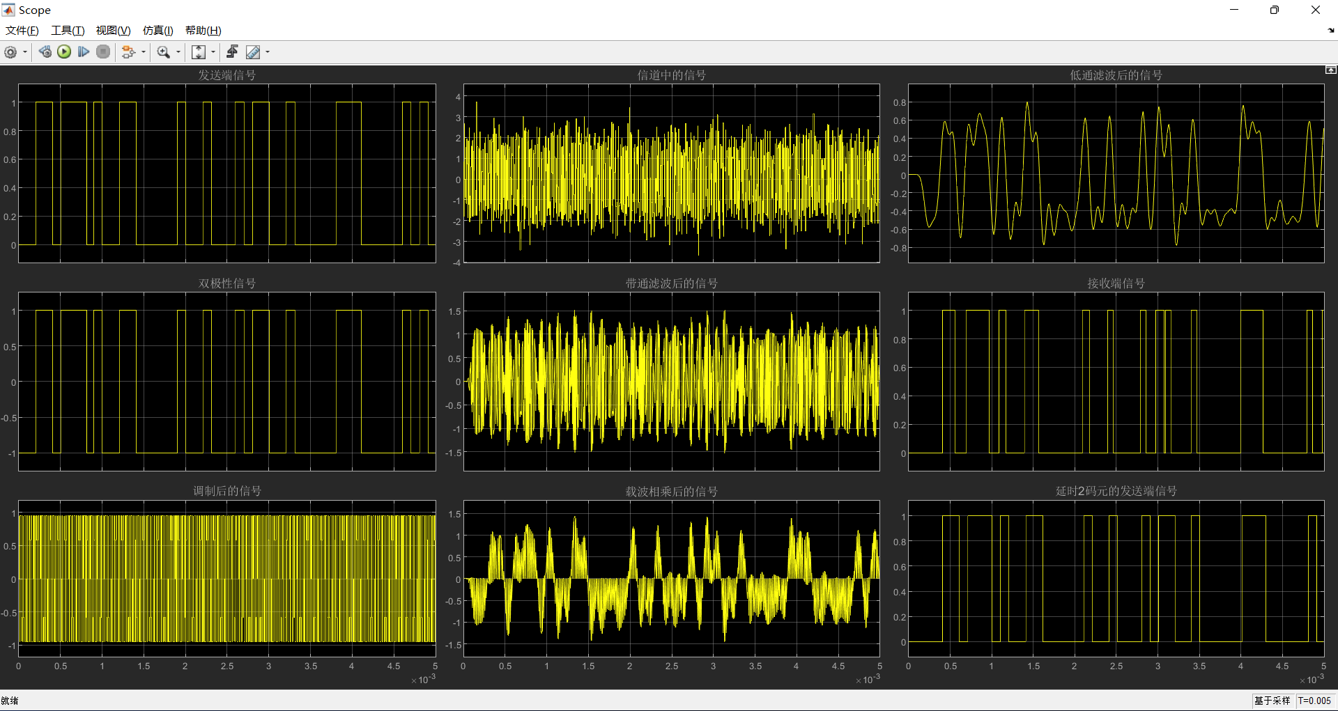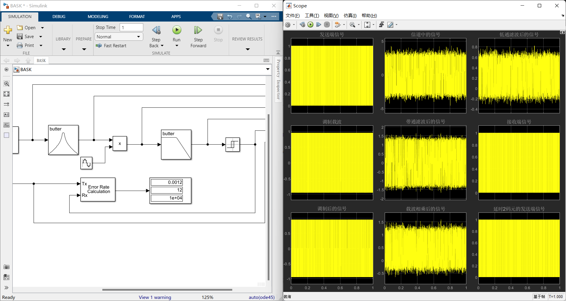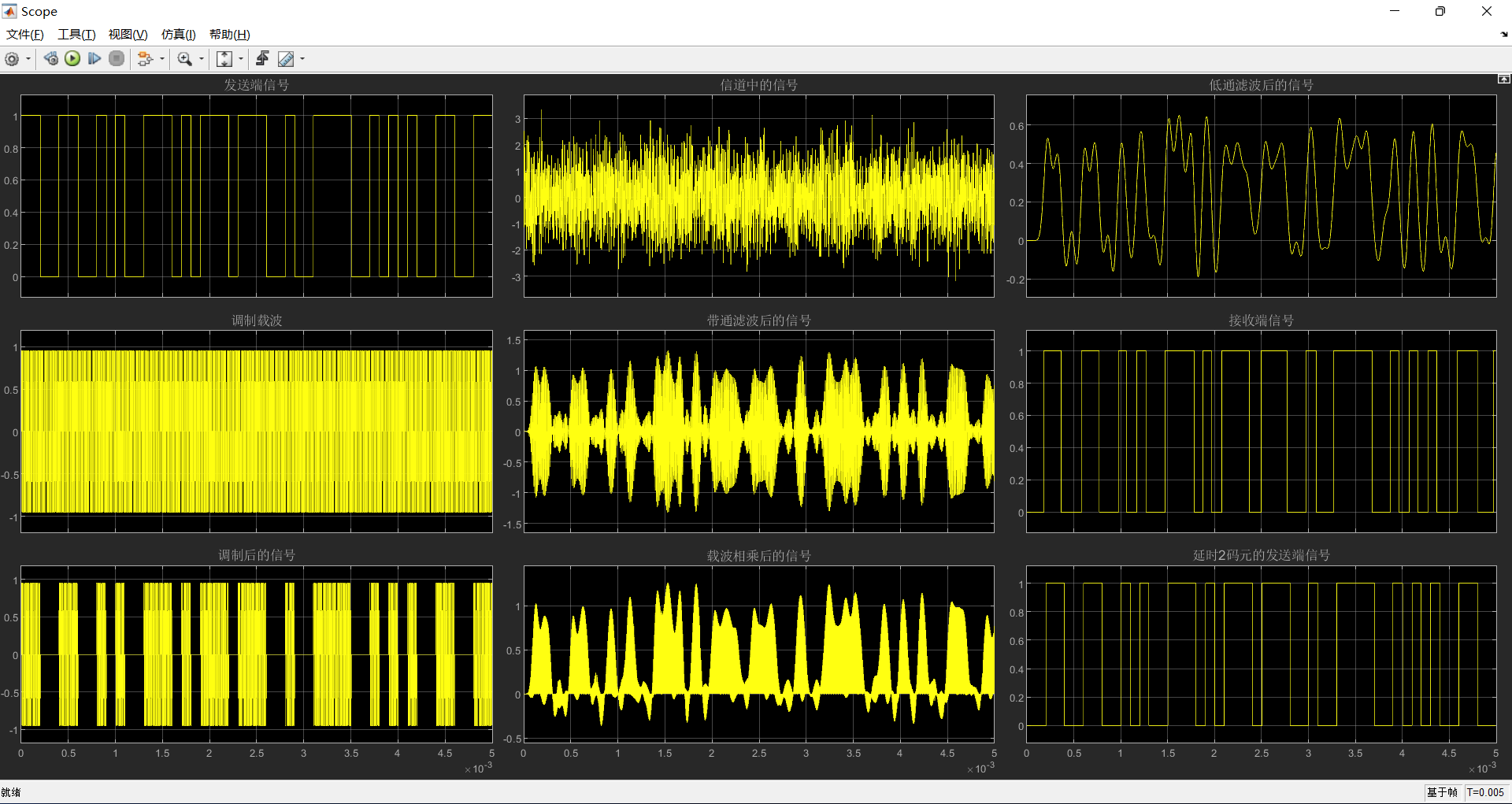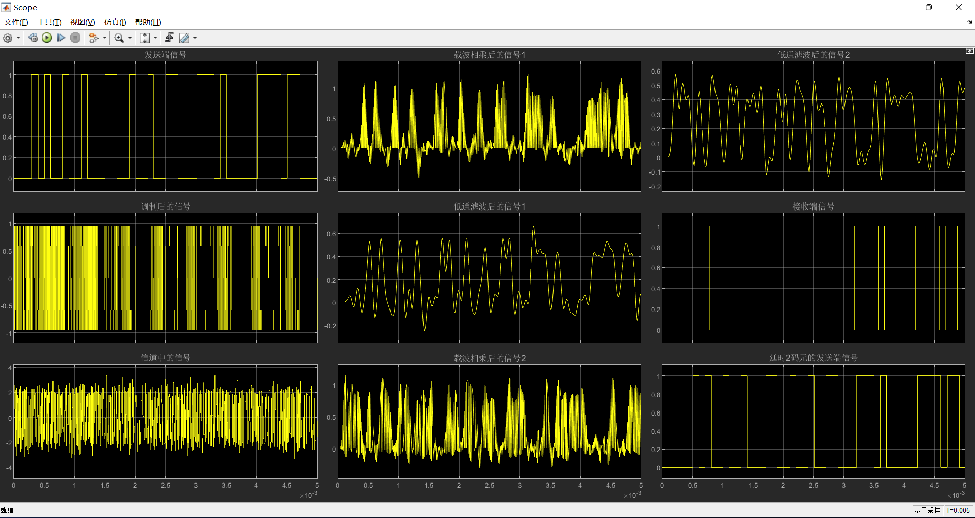先使用带通滤波器,让BASK信号完整通过,滤去其他频段的噪声。然后乘上与调制时完全相同的一列载波,信号被解调为