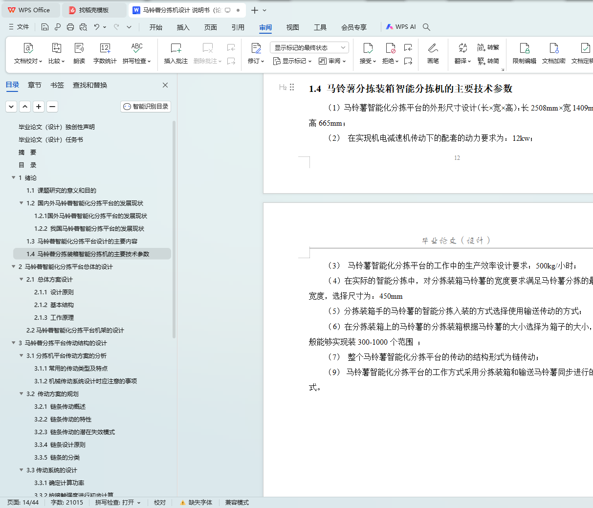 关键词:马铃薯智能化分拣;传动结构设计;分拣装箱装置;输送装置;机架设计